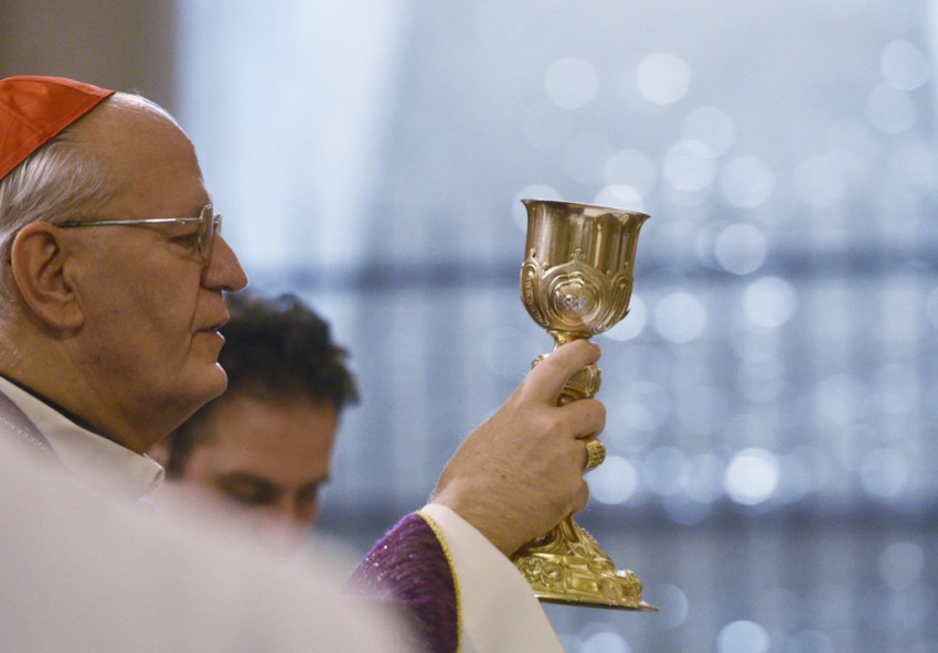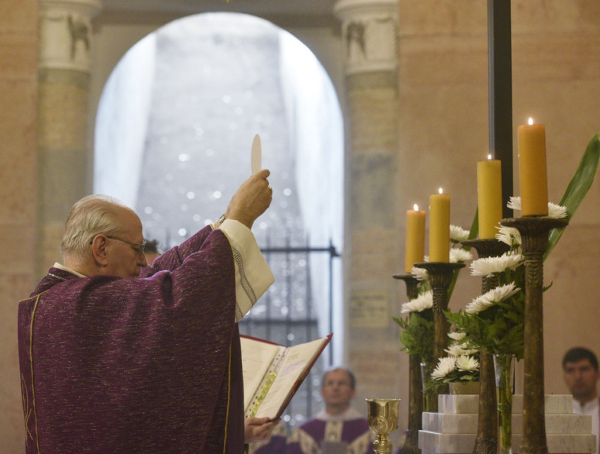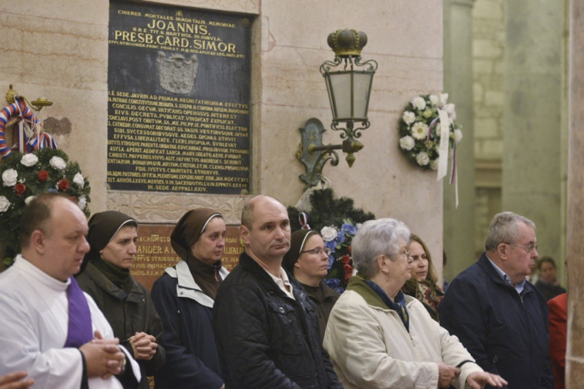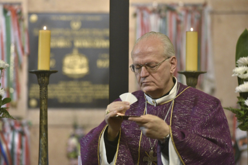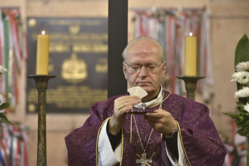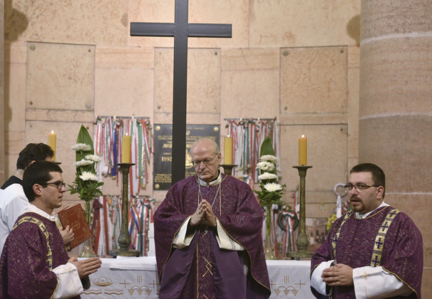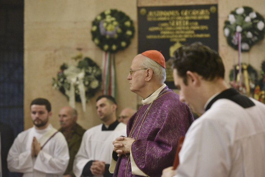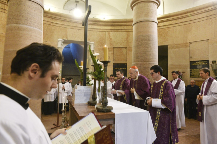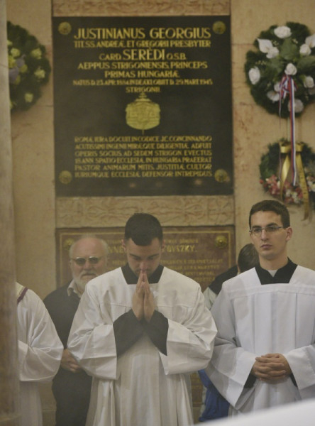 Halottak napja reggelén Erdő Péter bíboros, prímás szentmisét mutatott be az esztergomi bazilika altemplomában, majd mécsest helyezett el elődei sírjainál.