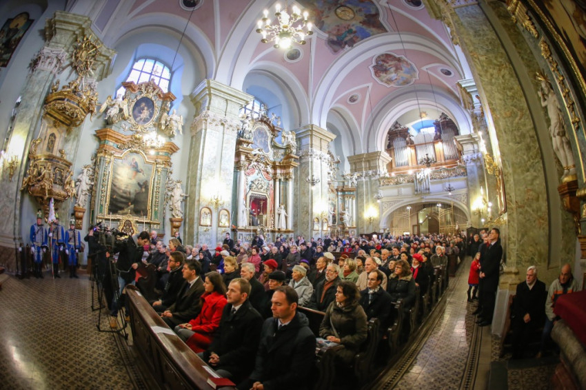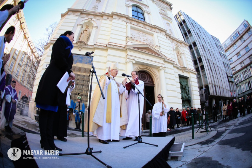 A homlokzat átadása után a Szervita kórus és a Händel Consort kamarazenekar közreműködésével adventi koncert hangzott el, majd Erdő Péter bíboros ünnepi szentmisét celebrált a nagy múltú, csaknem háromszáz éves barokk templomban. Koncelebrált többek között Philipp Ernst Gudenus templomigazgató és Osztie Zoltán budapest-belvárosi plébános.