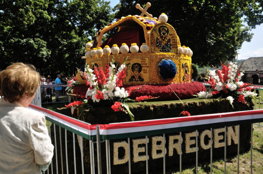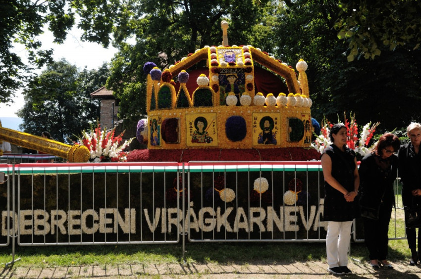 A Szent Koronát ábrázoló virágkocsi a hagyományoknak megfelelően idén is első lesz a kompozíciók sorában az augusztus 20-i karneváli menetben. Utána még tizenöt alkotást láthatnak majd az érdeklődők a nagy múltú debreceni rendezvényen.