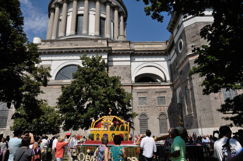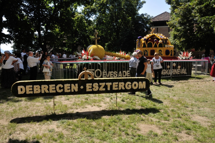A nemzet egységét jelképező, Szent Koronát ábrázoló virágkocsit 2009 óta rendre bemutatják más városokban, mielőtt megérkezik Debrecenbe, a virágkarneválra. Idén Esztergom a hajdú-bihari megyeszékhely karneváli partnervárosa, a virágkocsi augusztus 14-én, vasárnap érkezett meg a városba, ahol Erdő Péter bíboros áldotta meg, miután a bazilikában szentmisét mutatott be Nagyboldogasszony ünnepe alkalmából.