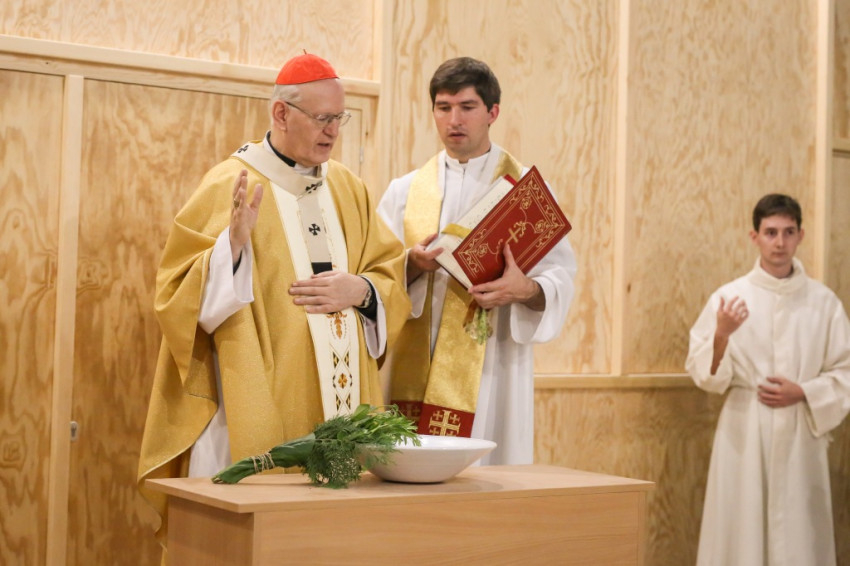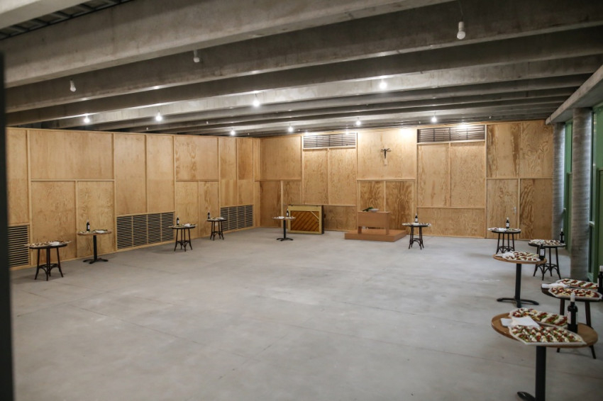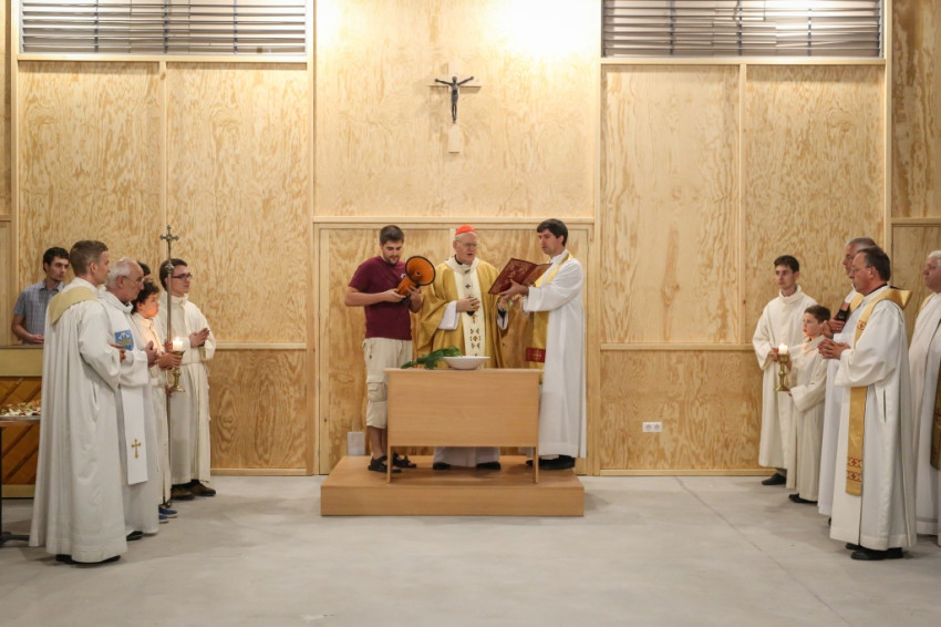 Az ünneplők Erdő Péter bíborost, prímást várták körükbe. Már tíz éve, 2008-ban tett látogatásakor, amikor 150 egyetemista zsúfolódott össze a 40 főre tervezett teremben, felvetődött a bővítés gondolata. Több terv is született, de a megvalósításra várni kellett. Egészen 2013-ig. Ismét a főpásztor látogatásához volt köthető a továbblépés, Erdő Péter ekkor jelentette be a közösségi tér bővítésének lehetőségét. Megszülettek a tervek, a makettet 2014-ben egy általános kihallgatáson megáldotta Ferenc pápa. Balázs Mihály, a templom egyik tervezője és Török Dávid, a templomépítő Török Ferenc fia tervei alapján 2017 júliusában indult meg a kivitelezés. A termet teljes készültségben idén szeptemberben vehetik majd birtokba a lelkészség közösségének tagjai.