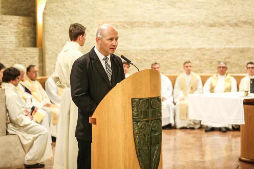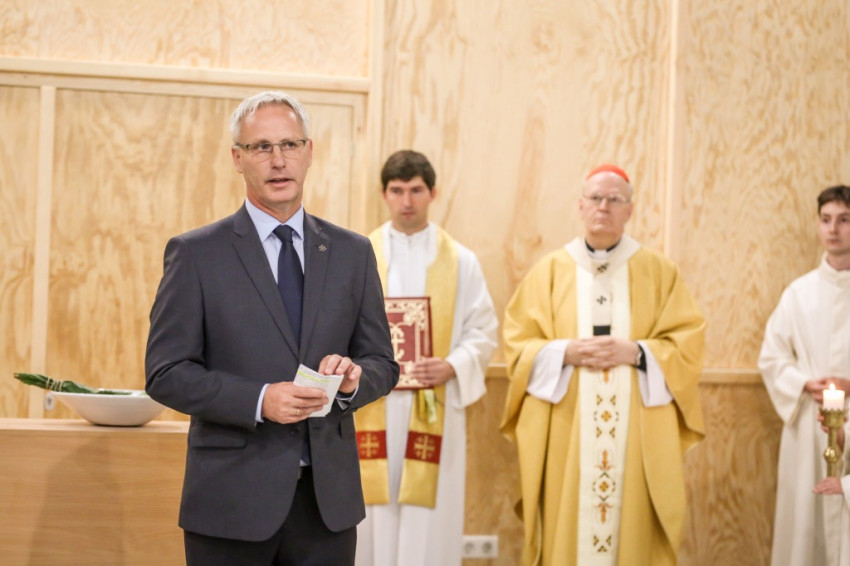 „Isten malmai lassan őrölnek, de biztosan. Bár még nem teljesen kész, de már a miénk” – fejezte ki örömét Pákozdi István egyetemi lelkész, majd köszöntötte a társadalmi és állami élet prominens képviselőit, köztük Soltész Miklóst, a Miniszterelnökség államtitkárát, Banai Péter Benőt, az államháztartásért felelős államtitkárt, Földváry Gábor István jogi és igazgatási ügyekért felelős helyettes államtitkárt, Csernus László önkormányzati képviselőt.