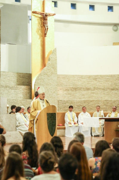 Kérjük az ő közbenjárását, hogy az egyetemi lelkészség közössége és egész fiatalságunk meglássa a keresztény hit erejét és világosságát a mai élet gyorsan változó helyzeteiben. Hogy mindnyájan megérezzük: konkrétan, a mi életünkben igenis eligazítást és erőt jelent a hitünk, hogy ettől lehet igazán értelmessé és boldoggá az életünk.