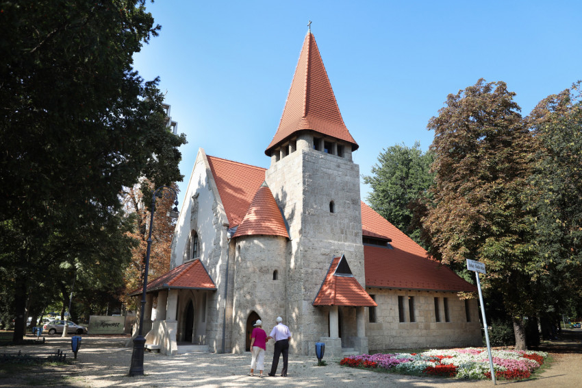 Az 1925-ben Csernoch János bíboros, érsek, hercegprímás által felszentelt templom az erdélyi népi építészet és a finn nemzeti szecesszió hatását mutatja. A temesvári származású Árkay ugyanis a magyar népi építészet kincséből leginkább erdélyi, kalotaszegi motívumokat alkalmazott a tervezés során.
