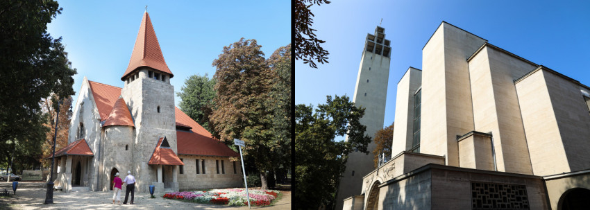 Két, stílusában, karakterében egészen más templomépület áll egymás mellett a Városmajorban. A kisebbiket 1925-ben, a nagyobbat, a Jézus Szíve-templomot 1933-ben szentelték fel. A tervezés mindkét esetben Árkay Aladár munkája. Nyolc év telt el mindössze a két építkezés között, de ez az időszak, az 1930-as évek eleje hozta meg Magyarországon az egyházi építészetben lezajlott modernista áttörést, ennek egyik első példája a városmajori Jézus Szíve-templom.