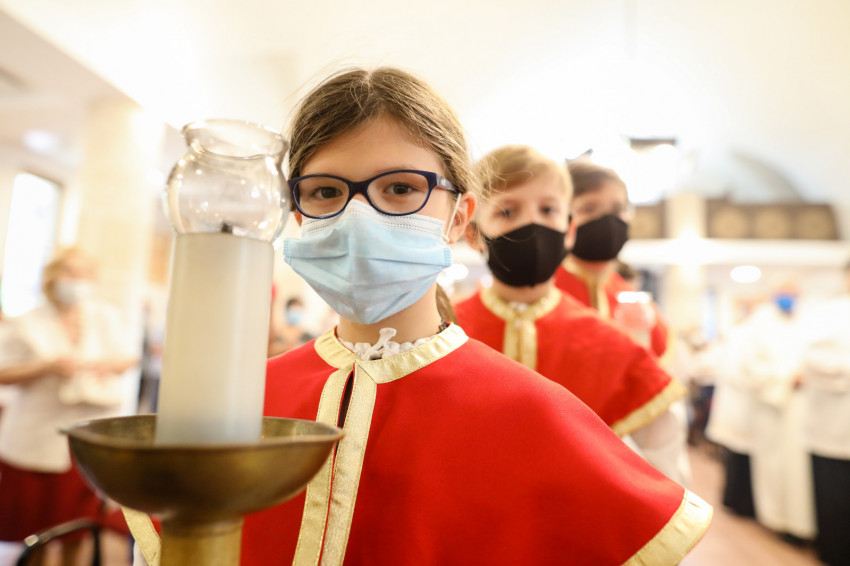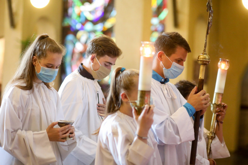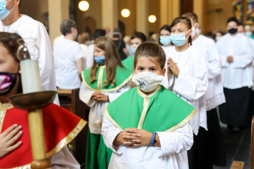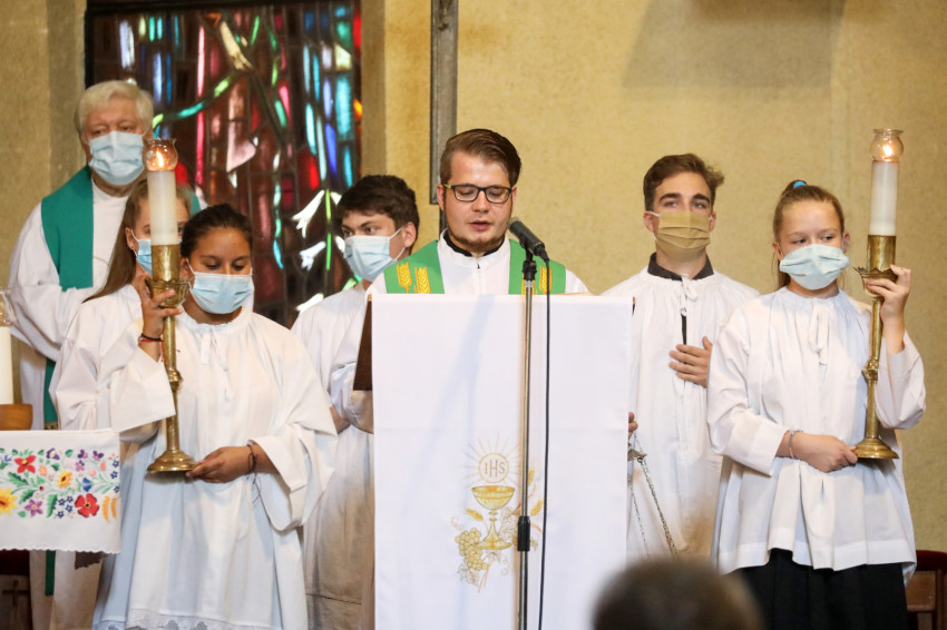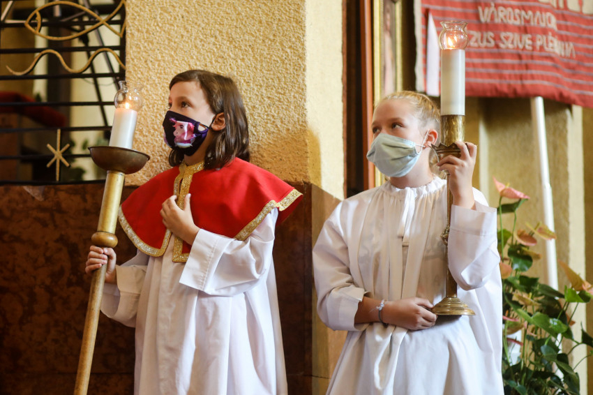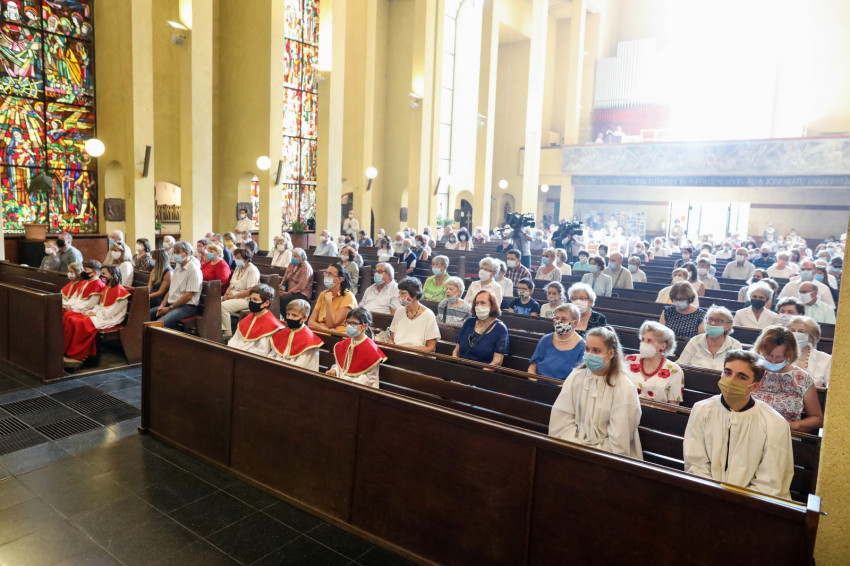 A ministránsok, az asszisztencia és a papság maszkban vonult be a templomba, a padsorokban is maszkokban ültek a hívek. Sok idős is jelen volt a szentmisén és együtt ünnepelt a közösséggel a vírusveszély ellenére is.