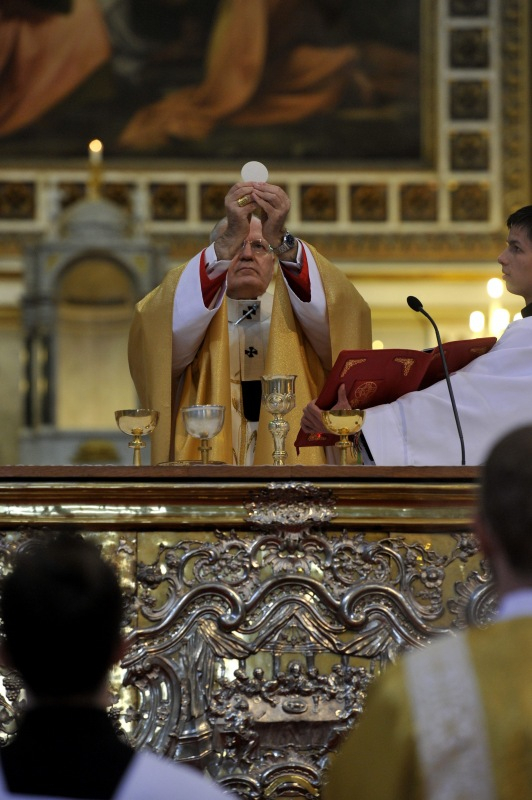 János evangéliumában a pészach szót az „átmenet” értelmében használja. Krisztus az, aki átmegy e világból az Atyához kereszthalála által. A tanítványok magában Krisztusban fedezik fel a húsvéti bárányt, de nem csak a saját képzeletük alapján. Jézus az, aki az Oltáriszentség alapításának titokzatos szavaiban kimondja: „ez az én testem, mely értetek adatik” (1Kor 11,24); „ez az én vérem, a szövetségé, amelyet sokakért kiontanak a bűnök bocsánatára” (Mt 26,28). Ő maga is úgy tekinti halálát mint áldozatot, mint engesztelést másokért – hangsúlyozta a bíboros.