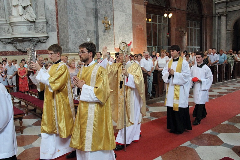 A szentmise elején Erdő Péter bíboros megemlítette, hogy a bazilika búcsúünnepén a hívek az egy közösséghez való tartozásukat is ünneplik, valamint külön köszöntötte Cserháti Ferenc esztergom-budapesti segédpüspököt, aki ugyanezen a napon nyerte el a papság teljességét.