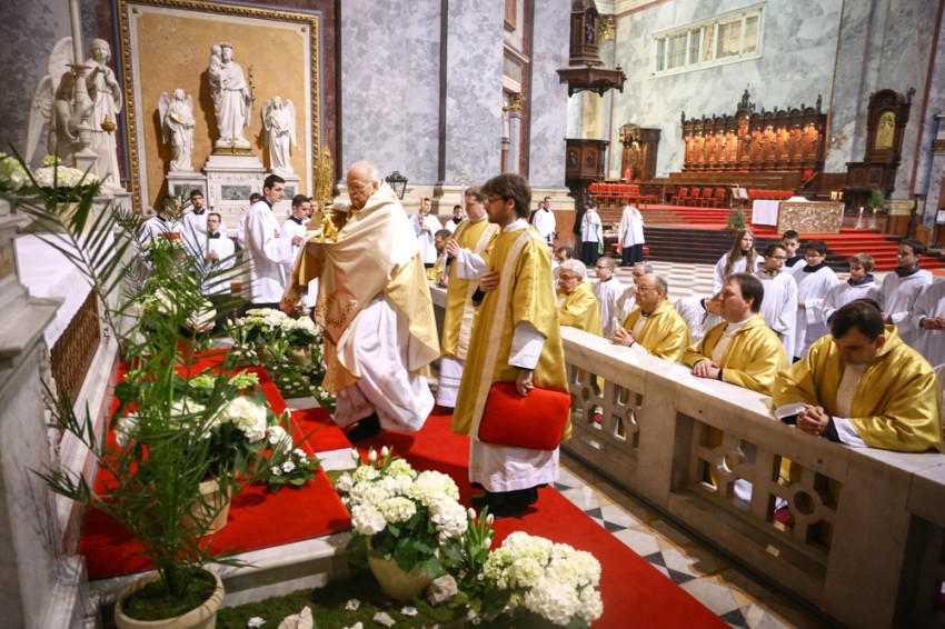 Ha a mindennapi kenyér és az ital arra szolgál, hogy az életünk napról napra tovább folytatódjék az időben, az Oltáriszentség azt az életet táplálja bennünk, amely túllép a téren és az időn. Az átváltoztatott szent színek lényege már az örökkévalósághoz kapcsol minket. Ezért olyan fontos a hívő ember életében a gyakori szentáldozás. Ebből kapjuk az erőt – hangsúlyozta a nagycsütörtök esti szentmisén a bíboros.