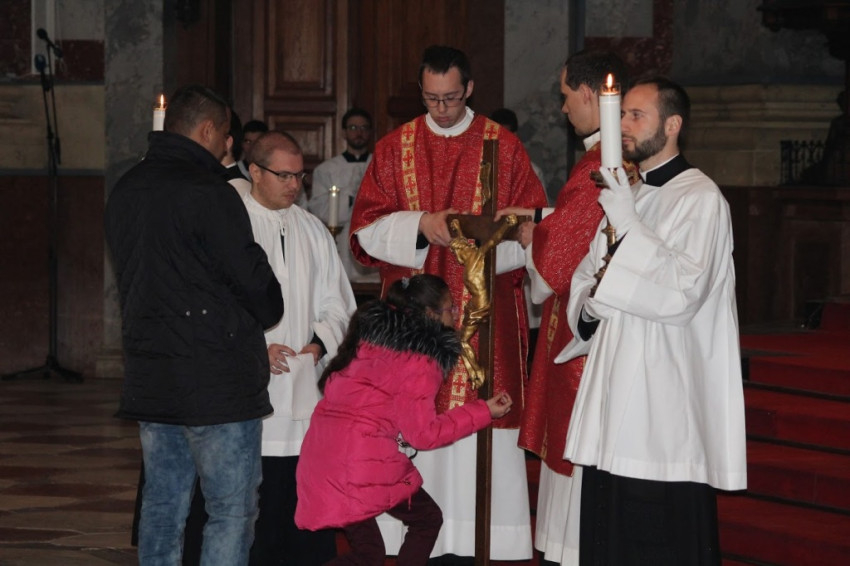 A szertartás kezdetén Erdő Péter bíboros leborult az oltár előtt, majd következett az igeliturgia, melynek részeként a szenvedéstörténetet, a passiót közösen énekelve adta elő a bazilika énekkara és az esztergomi Érseki Papnevelő Intézet növendékei, drámai módon idézve fel Krisztus szenvedését, az Isten irántunk való szeretetének titkát.