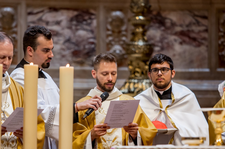 A szentmise folytatásában az újmisés lelkipásztor, valamint a nyolc új diakónus csatlakozott főpásztorához az áldozat bemutatásában és ünneplésében.