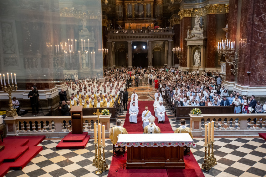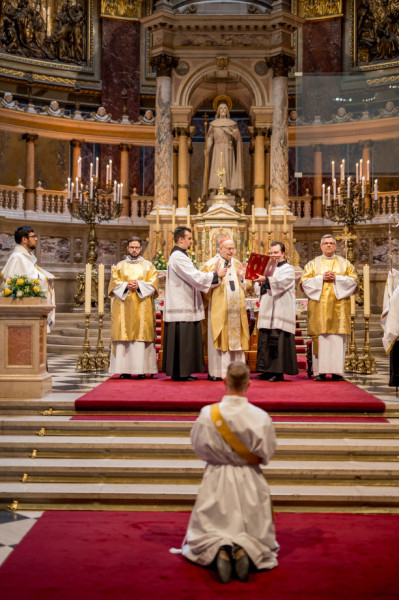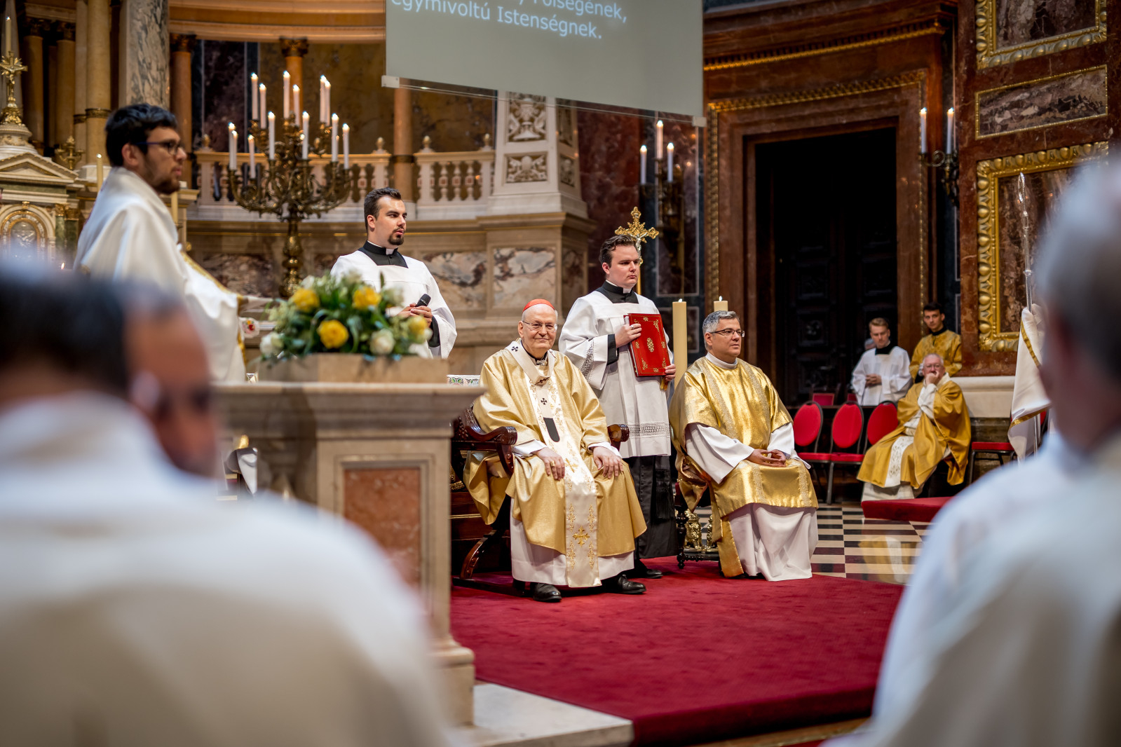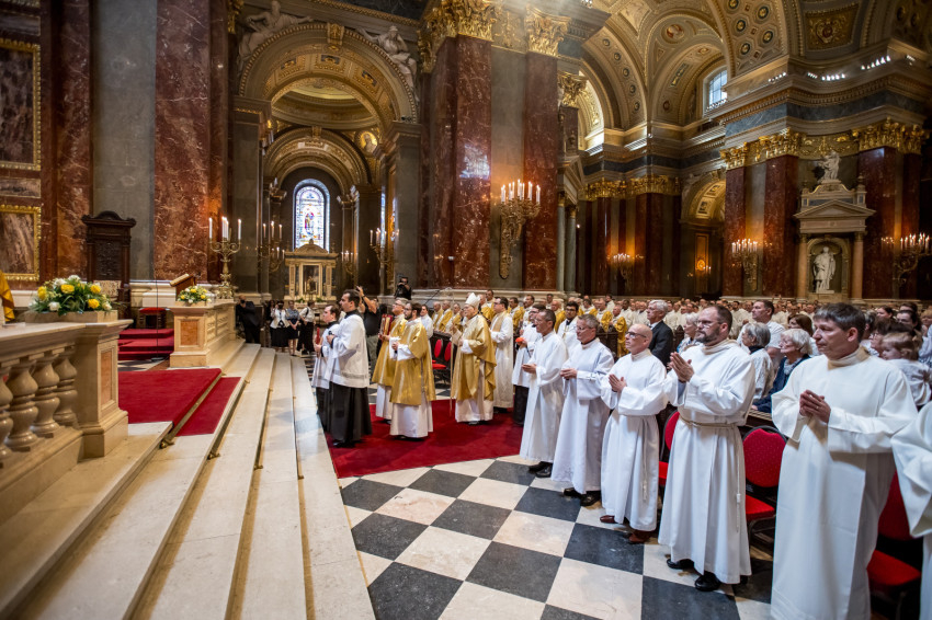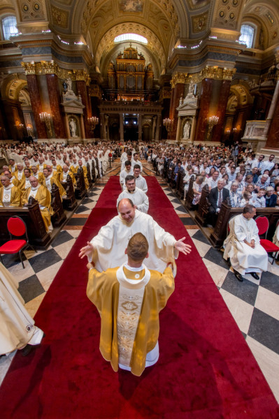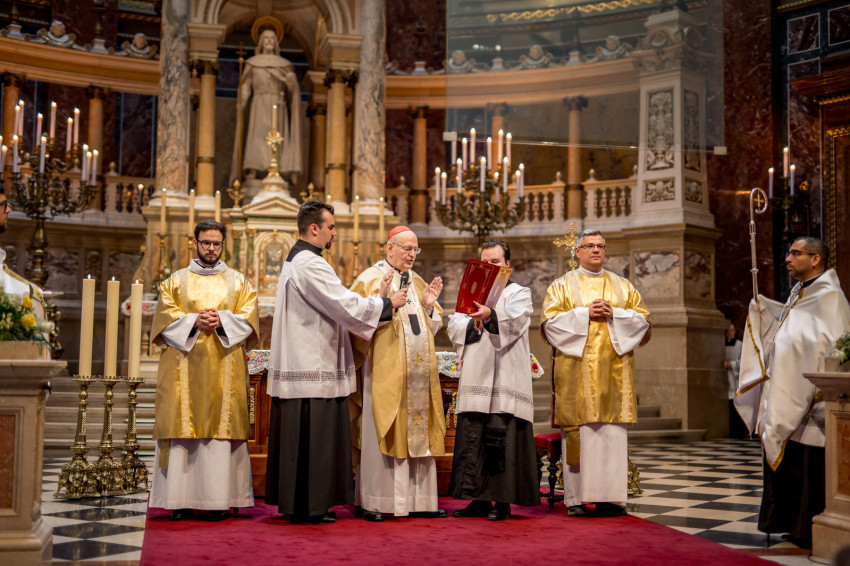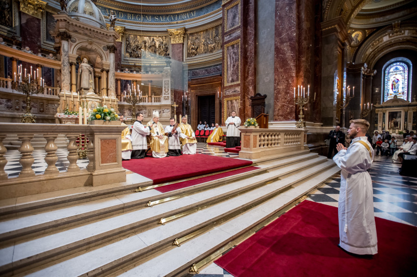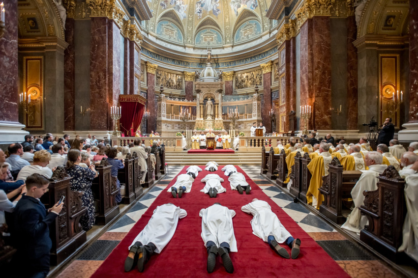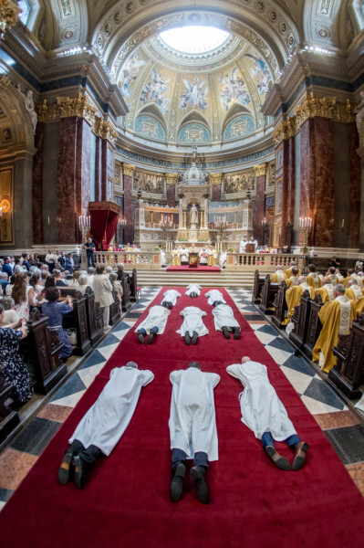 Ebben a roppant összefüggésben áll a mi papi és diakónusi szolgálatunk. Ezért olyan nagy ajándék, hogy az idén újra papot és számos diakónust szentelhetünk itt, a budapesti bazilikában. Kérjük számukra, Egyházunk és népünk számára Isten áldását, jelenlétének biztató és felemelő erejét. Ámen.