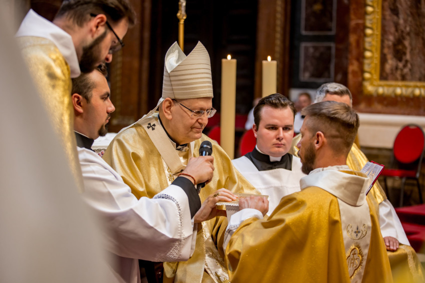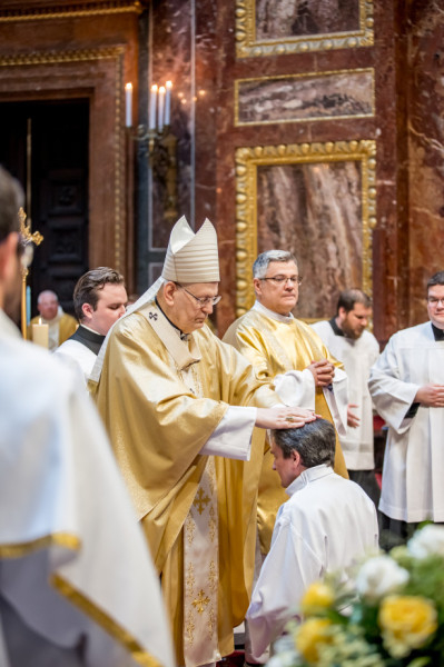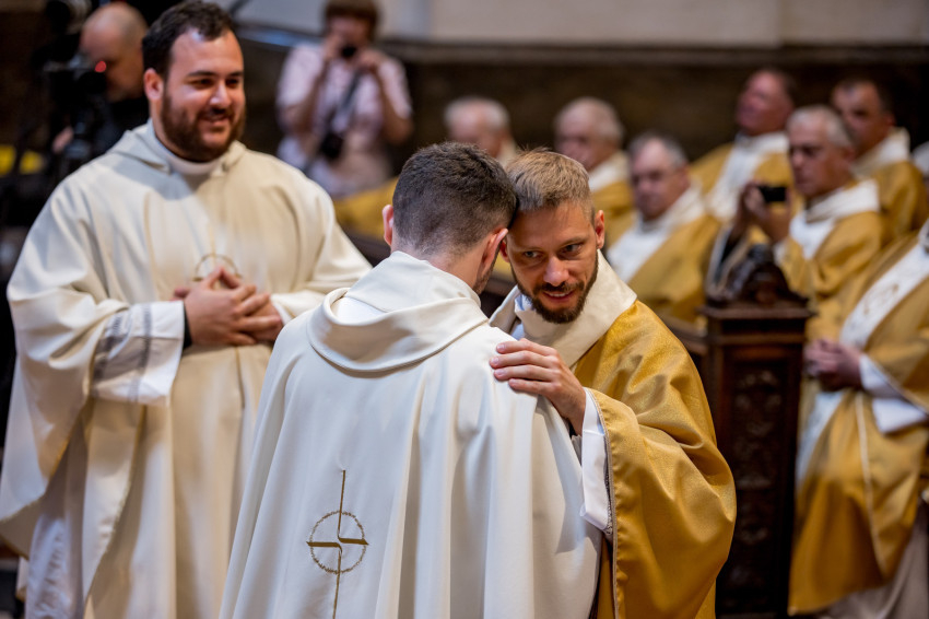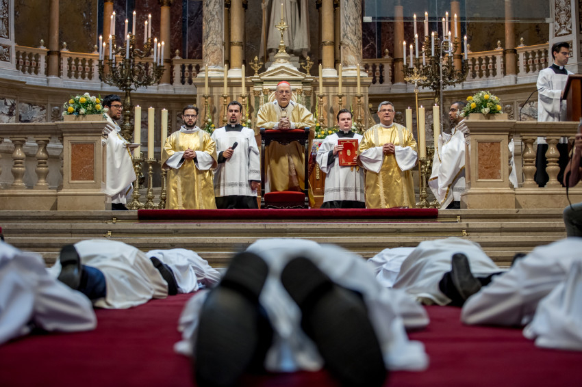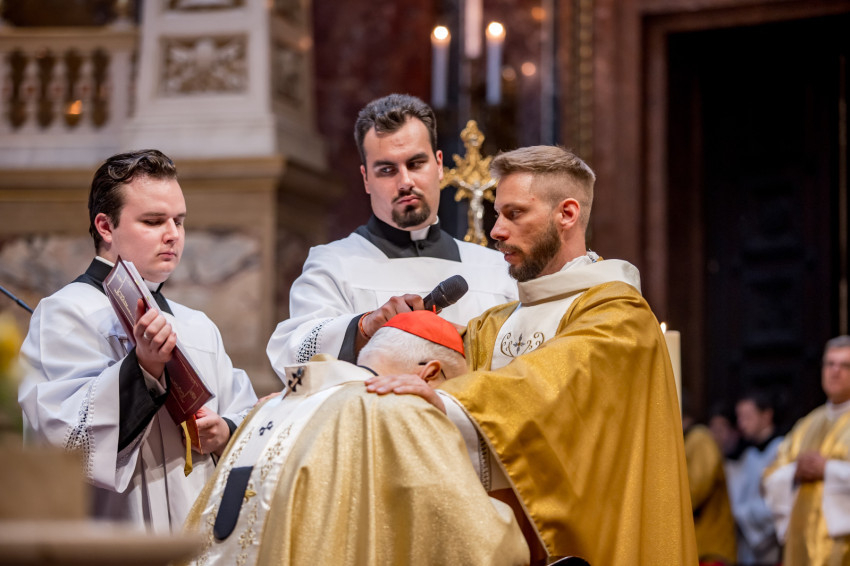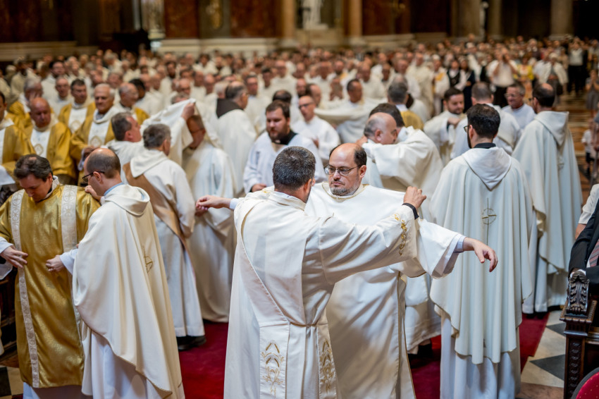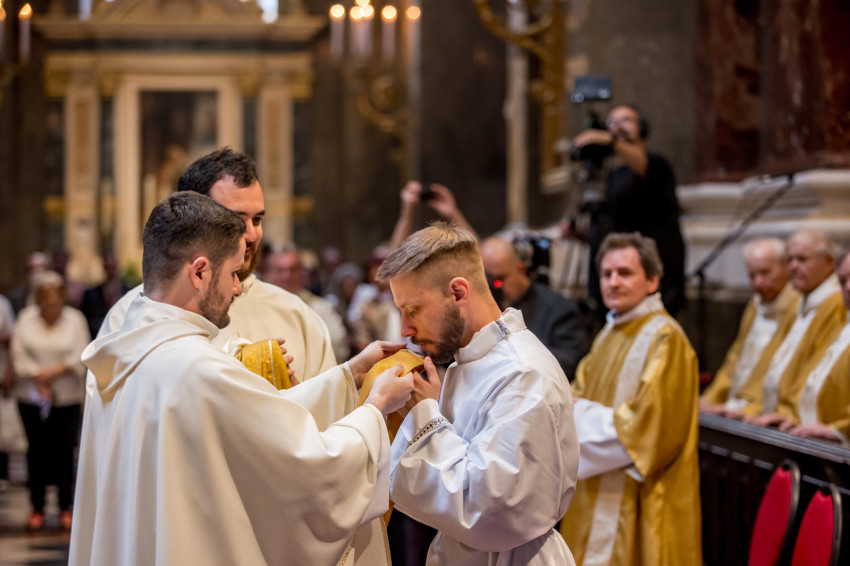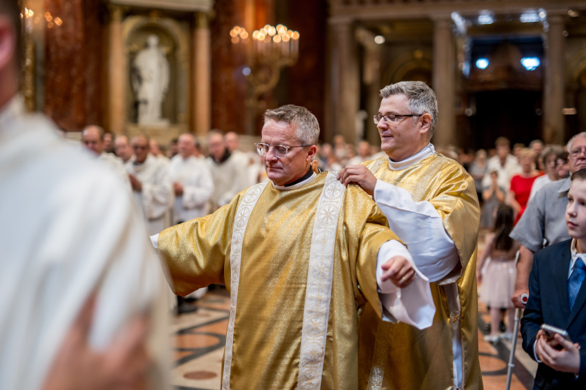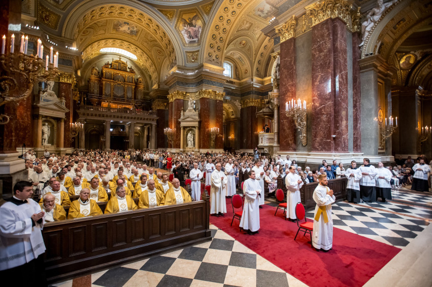 Ebben a roppant összefüggésben áll a mi papi és diakónusi szolgálatunk. Ezért olyan nagy ajándék, hogy az idén újra papot és számos diakónust szentelhetünk itt, a budapesti bazilikában. Kérjük számukra, Egyházunk és népünk számára Isten áldását, jelenlétének biztató és felemelő erejét. Ámen.