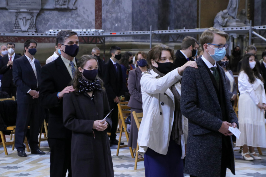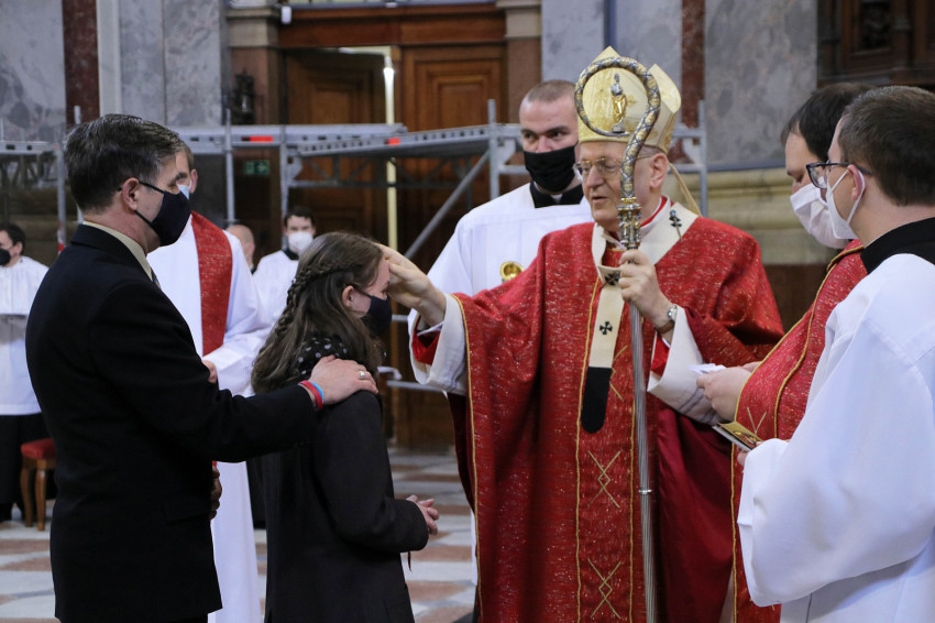 Az ünnepélyes szentmise keretein belül a homíliát követően Erdő Péter 47 fiatalnak szolgáltatta ki a bérmálás szentségét, akik főként esztergomi, illetve a környékbeli plébániákról érkeztek.