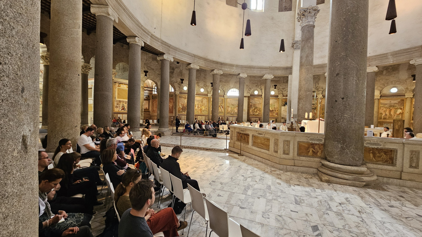 Ferenc pápa temetésének másnapján, az isteni irgalmasság Szent II. János Pál pápa alapította ünnepén Erdő Péter bíboros, prímás a római Santo Stefano Rotondóban celebrált szentmisét.