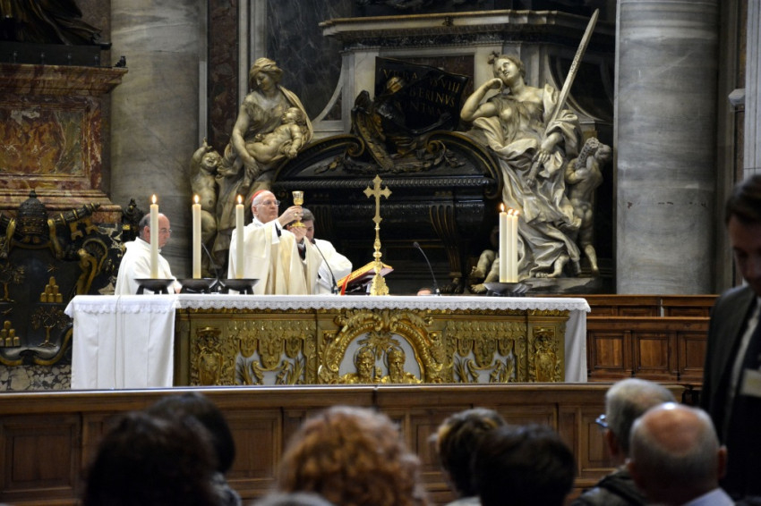 Erdő Péter a Szent Péter-bazilika főoltára mögötti katedra oltárnál mutatott be szentmisét. Az Ábrahám Közösség jelen levő több mint félezer tagjának mondott beszédében úgy fogalmazott, „olyan időkben élünk, amelyekben mindenekelőtt a lényegre kell figyelni. A részletek finomítása a nyugodt, előrelátó, széles egyetértés által jellemzett koroknak fenntartott feladat. Nekünk, európai keresztényeknek ma ez a nyugalom nem adatott meg”.