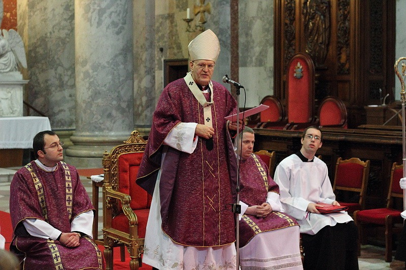 A nagyböjt útja a Golgota felé tart, beteljesedése Krisztus megváltó kereszthalála és feltámadása. A kereszt mutatja tehát az irányt, a lendületet pedig a Szentlélektől kapjuk – fogalmazott Erdő Péter, hozzátéve: csak akkor haladhatunk a megfelelő irányba, ha megszabadulunk bűneinktől, őszintén felülvizsgálva mindennapi életünket, azokat a szürke napjainkat, amikor felületesen szemlélve semmi nagy rosszat nem műveltünk. Ugyanis ha jobban belegondolunk, ha nyugodtan és imádsággal vizsgáljuk meg a lelkiismeretünket, elfoghat bennünket a rossz érzés, hogy nem a helyes irányba megyünk. Miért is nem volt időm ma egész nap imádkozni, miért nem volt ma egy jó szavam senkihez, mi volt az, amit mindennél fontosabbnak éreztem? – vetődnek fel a kérdések. Kiderül, hogy a pillanatnyi helyzetek nyomása alatt sodródik az ember, a saját vagy a mások szeszélyes ötleteinek enged, esetleg a tévén vagy az interneten vándorol egyik csatornáról vagy honlapról a másikra, és már nem is tudja, miért. Talán azért, hogy ne kelljen gondolkozni, talán azért, mert a csöndben meghallanánk a lelkiismeretünk szavát és eszünkbe jutna az evangélium is, ahol Jézus világosan megmondta, hogy mit fog majd tőlünk az örök bíró kérdezni.