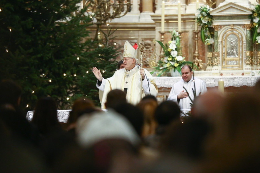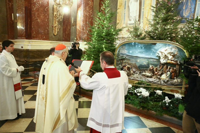 A szertartás rendhagyó módon kezdődött: az asszisztencia és a papok megszakították a bevonulást a budapesti bazilika betlehemje előtt, és Erdő Péter vezetésével ott imádkozták el Ferenc pápa ez alkalomra írott imáját, amely a Szent Család, Jézus, Mária és József oltalmát kéri a családokra. A szentmise köszöntő szavaiban a bíboros reményét fejezte ki, hogy az emberségnek és szeretetnek a – názáreti szent családban megjelenő – gazdagságát „mi is jelenlévővé tudjuk tenni környezetünkben”.