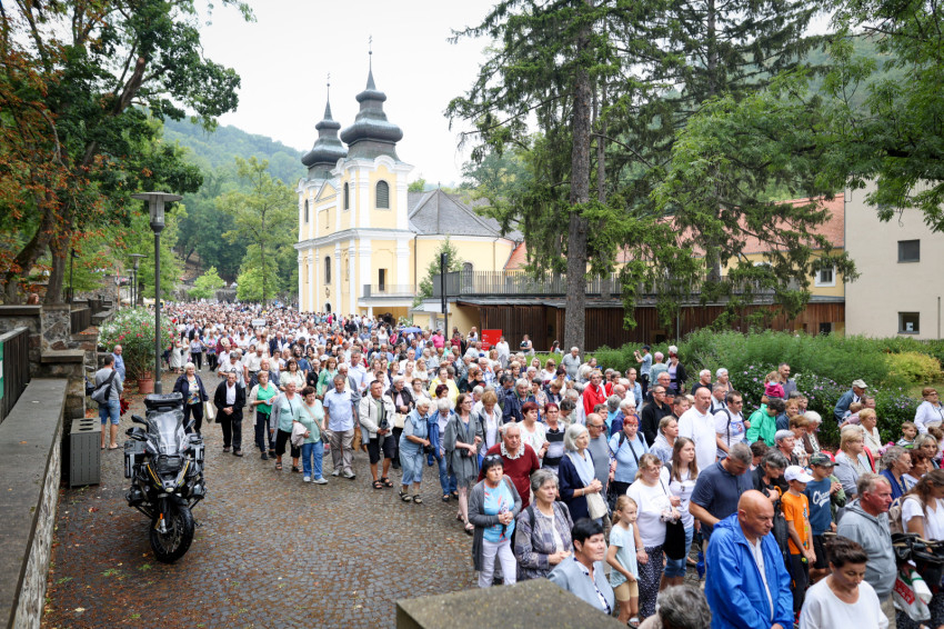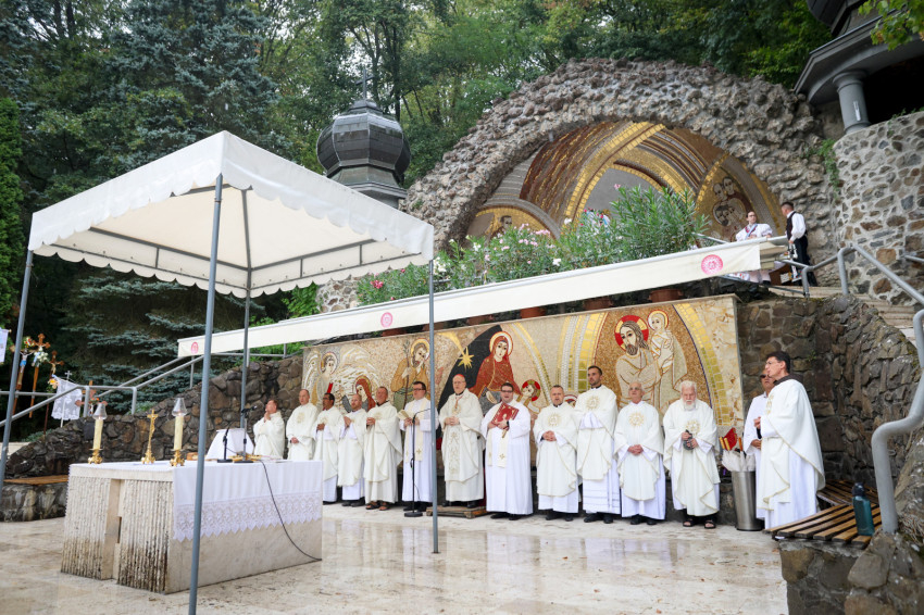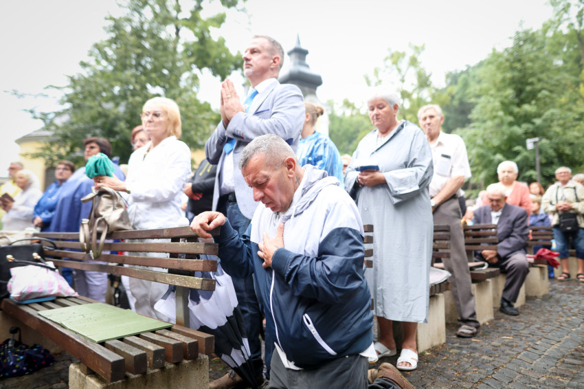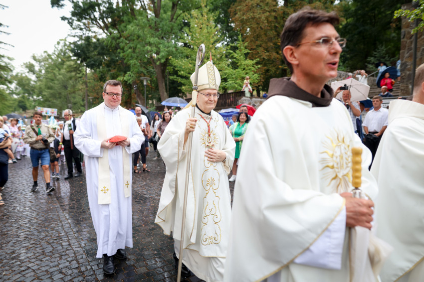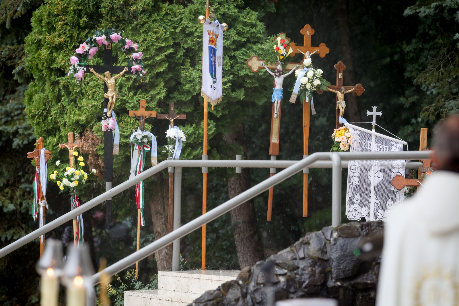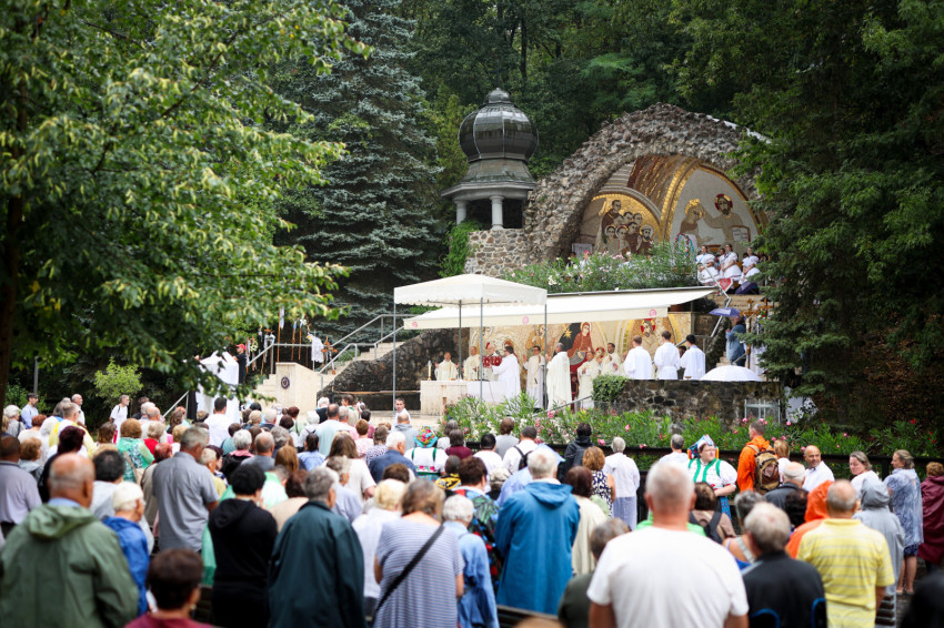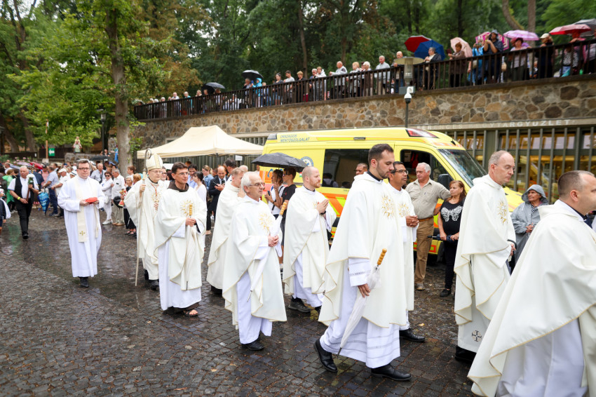 Vasárnap délelőtt esett az eső a hetek óta tartó szárazság és perzselő hőség után. Ennek ellenére a kegyhely legnagyobb ünnepén, a főbúcsú harmadik napján rengetegen jöttek el a szentmisére, melyet a bíboros mutatott be. Sokan behúzódtak a bazilikába, mások vállalták az elázást, így a szabadtéri oltárnál is megteltek az ülő- és állóhelyek.