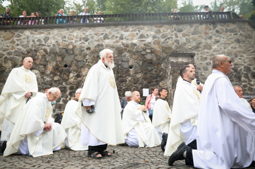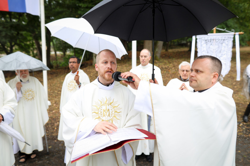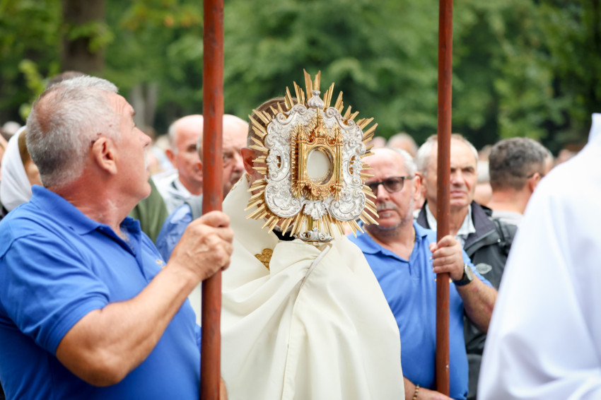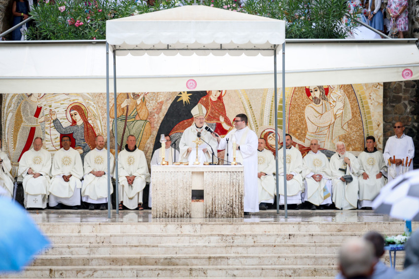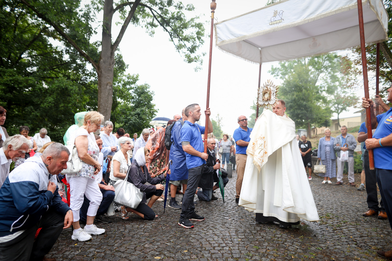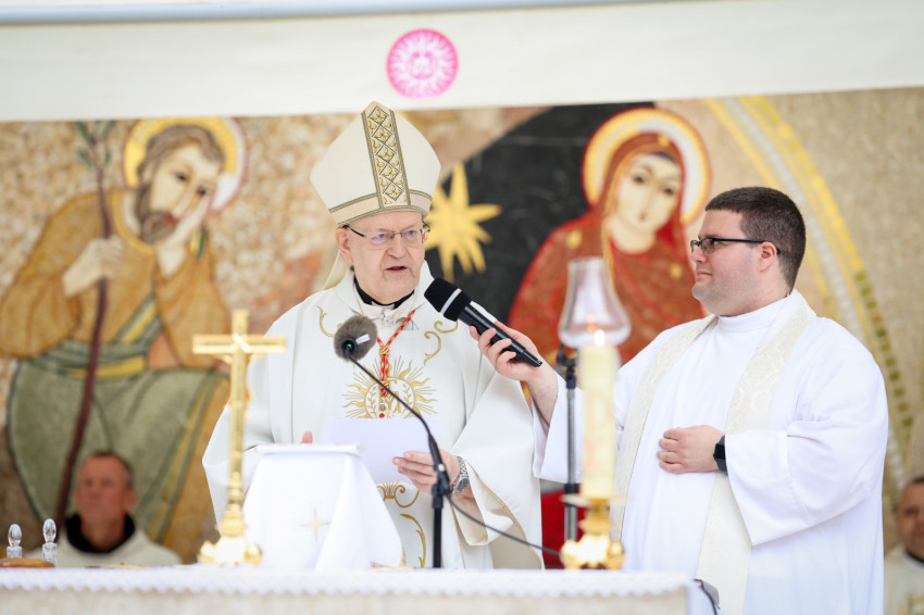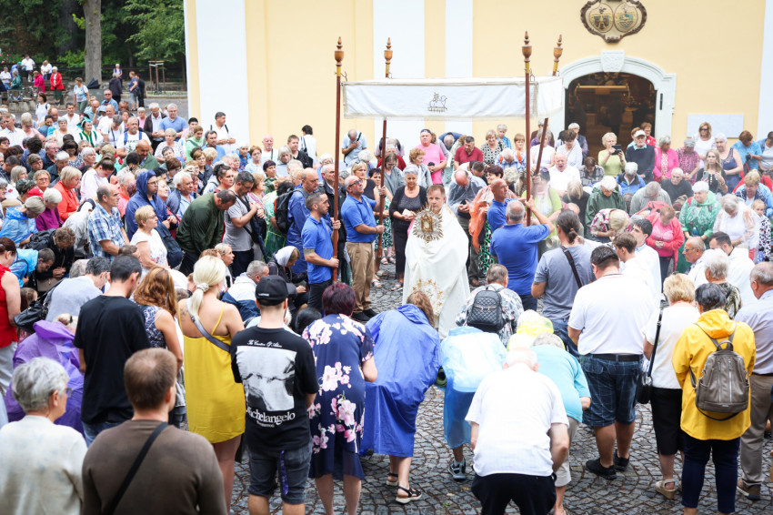 Vasárnap délelőtt esett az eső a hetek óta tartó szárazság és perzselő hőség után. Ennek ellenére a kegyhely legnagyobb ünnepén, a főbúcsú harmadik napján rengetegen jöttek el a szentmisére, melyet a bíboros mutatott be. Sokan behúzódtak a bazilikába, mások vállalták az elázást, így a szabadtéri oltárnál is megteltek az ülő- és állóhelyek.