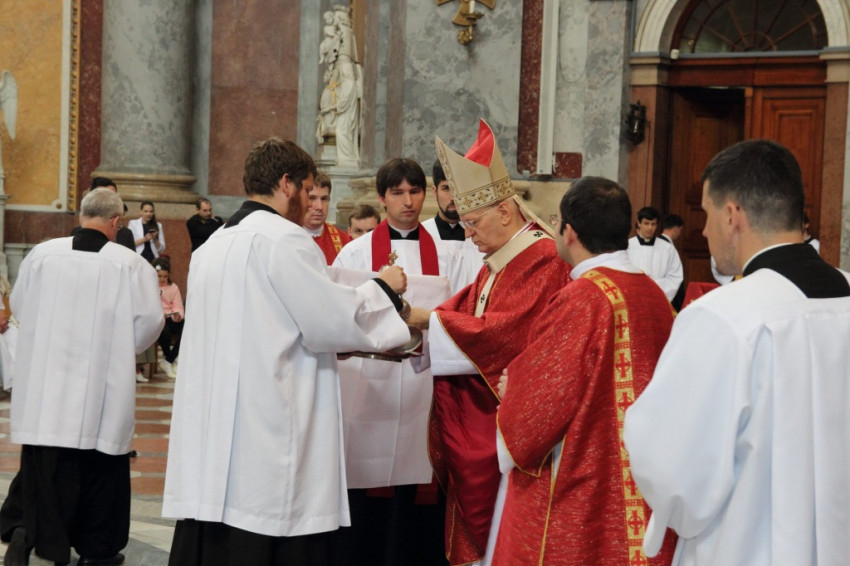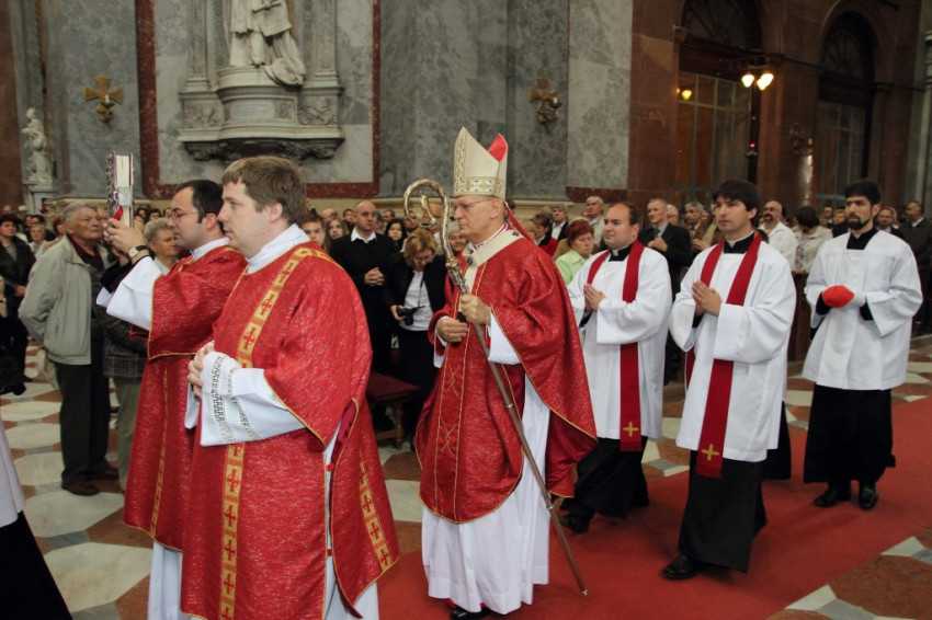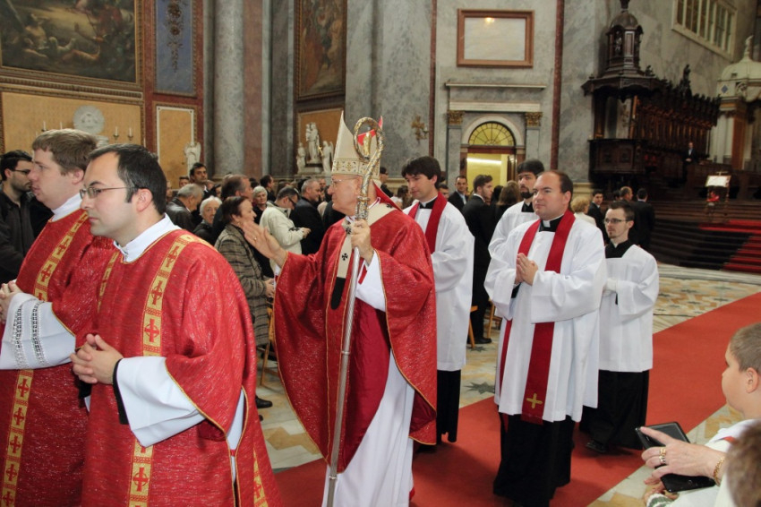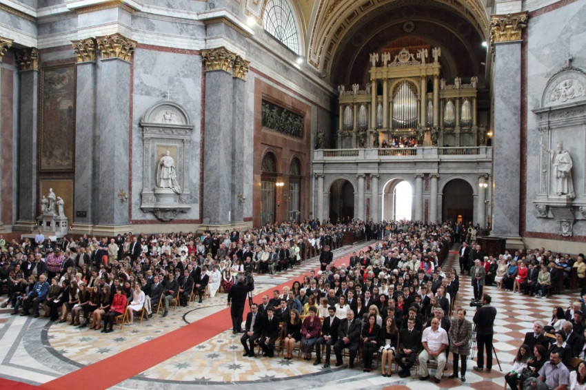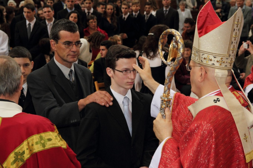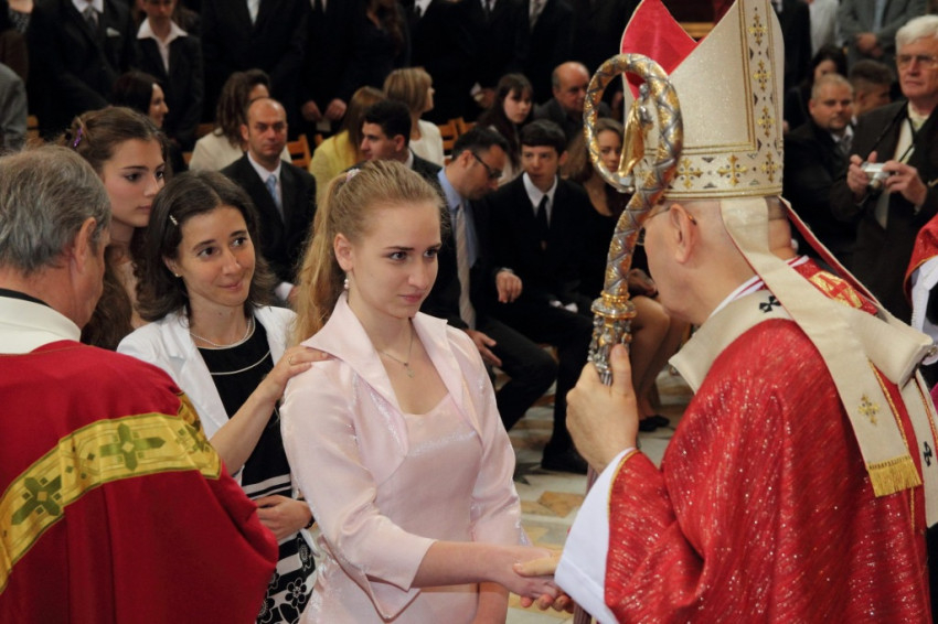 A szentbeszéd után Erdő Péter bíboros hatvannégy, az esztergomi plébániákhoz tartozó fiatalnak szolgáltatta ki a bérmálás szentségét.