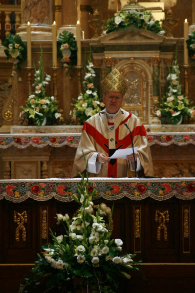 Krisztus testének és vérének ünnepe nem általánosságban beszél a hitről, mint az örök élet feltételéről, hanem a hit tágabb valóságában egyetlen pontra irányítja figyelmünket és ezzel kifejezésre juttatja az Úrnapja, az Oltáriszentség alapítása ünnepének üzenetét – kezdte szentbeszédét Erdő Péter. Az örök élet abból fakad, hogy Krisztus testével táplálkozunk – mutatott rá. Ebben az ünnepben megjelenik előttünk az utolsó vacsora képe. Látjuk az Urat, amint megtöri a kenyeret. Az utolsó vacsora asztalközössége elővételezi, titokzatosan előre megjeleníti minden idők Egyházának közösségét. Az evangélium leírásának erős kifejezései szinte sulykolják: Jézus emberi valósága nem csak látszat. Az eucharisztikus test és vér legreálisabb jelenlét, az Oltáriszentségben való részesedés igazságát tárja fel előttünk – mondta a főpásztor.