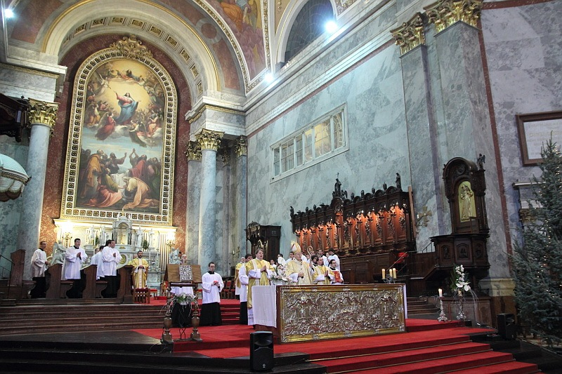 Nagy Szent Leó pápa mondja, hogy Isten adományai közül karácsony ünnepének leginkább a béke ajándéka felel meg. „A békesség sajátos eredménye és egészen különös ajándéka pedig az, hogy egybekapcsolja Istennel mindazokat, akiket ő választott ki ebből a világból”. Krisztus kibékíti Istent az emberiséggel, de békességet teremt ember és ember között is. Ebből a hitből fakad az egyház egysége, amely a kezdet kezdetén azt jelentette, hogy a választott nép soraiból kikerülő tanítványok és a pogányból lett keresztények nem két különböző gyülekezetet alkotnak, hanem egyetlen egyház tagjai. Szent Pál szerint Krisztus „a mi békességünk, aki a kettőt eggyé forrasztotta” (Ef 2,14). Amikor tehát a Hiszekegyben megvalljuk, hogy hiszünk az egy, szent, katolikus és apostoli Anyaszentegyházban, mindig gondoljunk erre: Krisztus egyházában egyetlen új népet alkotunk –hangsúlyozta a főpásztor.