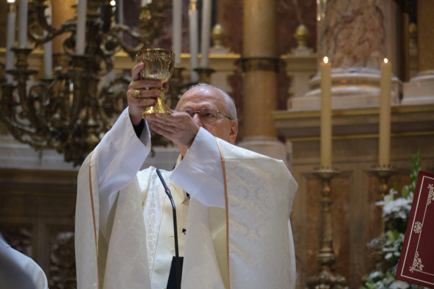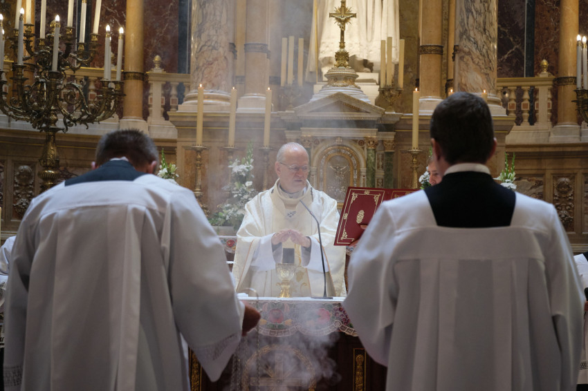 3. Úrnapja ünnepe nagycsütörtök titkát állítja elénk immár a feltámadás fényében. Az utolsó vacsora után Jézus kiment az Olajfák hegyére tanítványai kíséretében. Ezzel kezdetét vette szenvedésének útja. Erre emlékeztet minket is évről évre nagycsütörtök liturgiája, amikor az Eucharisztia alapításának megünneplése után elvonulunk az Oltáriszentséggel a szentsírhoz, hogy együtt virrasszunk a szenvedő Krisztussal. Az idén még ezt sem tehettük meg, hanem üres templomokban végeztük a nagycsütörtöki szertartás. A legtöbben a szent cselekményt csak közvetítések útján kísérhették. Ugyanezt a Krisztussal való közösséget éljük át, de örömteli módon, a feltámadási körmenet liturgiájában is. Ahogyan az Úr Mózes szolgálatát igénybe véve kivezette a népet Egyiptomból, úgy vonul a sírból föltámadt Krisztus nyomában a szabadságukat elnyert, megváltott emberek ujjongó körmenete. Csakhogy a feltámadási körmenetet sem tudtuk a szokásos módon megtartani. Viszont hallottuk a feltámadás evangéliumát, az asszonyokhoz és a tanítványokhoz szóló üzenetet: „Előttetek megy Galileába.” Ismét csak Jézus jár elöl, a tanítványok azok, akik követik őt. Ezúttal azonban a körmenet nem ér véget, hanem tart az idők végezetéig. Jézus megváltott minden nemzetet, minden kor emberének meghozta a szabadulást. Mi is hivatást kaptunk arra, hogy nyomában menjünk Galileába, hogy járjuk be a világ útjait, és vigyük el Krisztus örömhírét minden népnek, minden egyes embernek. Erre kapunk különleges alkalmat az idén. Szentatyánk a Nemzetközi Eucharisztikus Kongresszust 2021 szeptemberére helyezte át. Folytassuk hát lelki előkészületünket az idén a misszió jegyében.