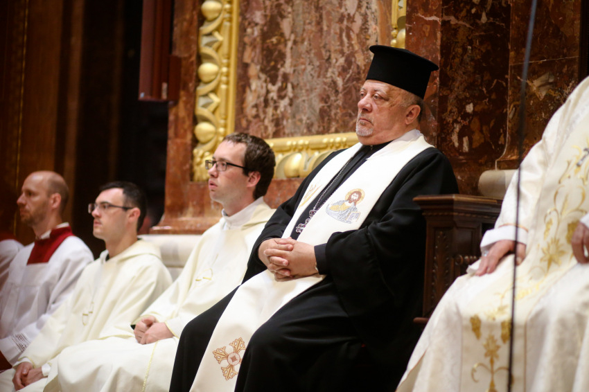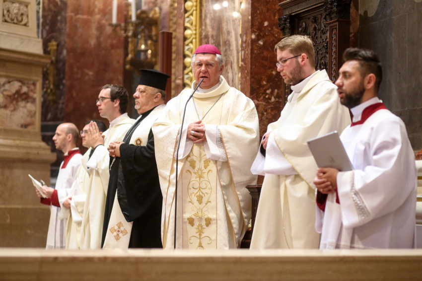 A bíborossal koncelebrált többek között Snell György esztergom-budapesti segédpüspök, a bazilika plébánosa és Nabbil Haddad jordániai melkita görögkatolikus pap, a Jordániai Vallási Együttélést Kutató Központ (Jordanian Interfaith Coexistence Research Center, JICRC) alapítója és vezetője.