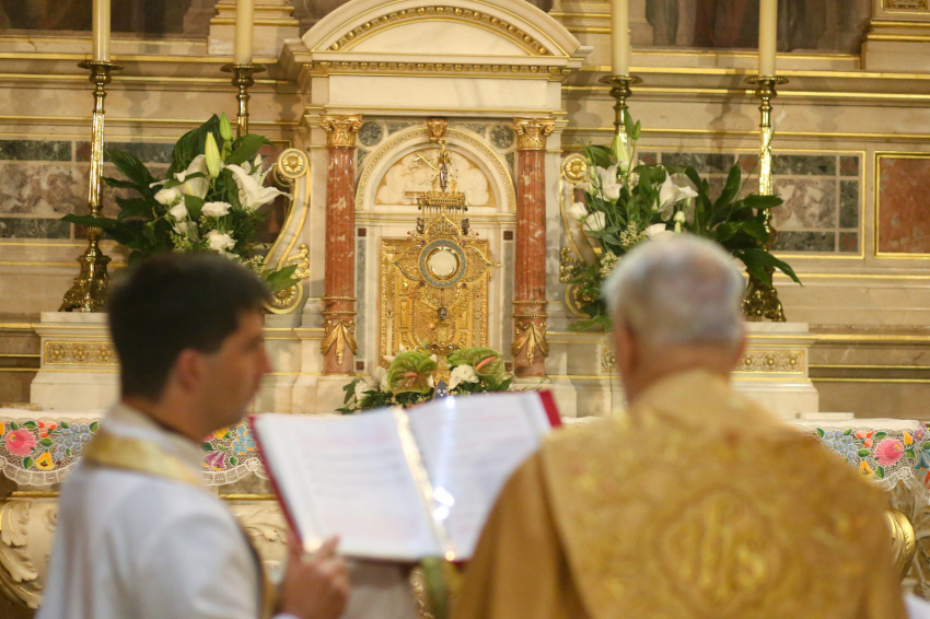 A mai evangéliumban a kenyérszaporítás csodáját hallottuk. Ebben az eseményben az Egyház az Eucharisztia előképét látja. Az Oltáriszentségben Krisztus csillapítja az ember testi és lelki éhségét. Az apostolok és utódaik azok, akik az utolsó vacsora titokzatos eseményét a szentmisében jelenvalóvá teszik, ezért Jézus felszólítása, amit a tanítványokhoz intéz, hogy „ti adjatok nekik enni”, az apostolok utódainak is szól nemzedékről nemzedékre.
