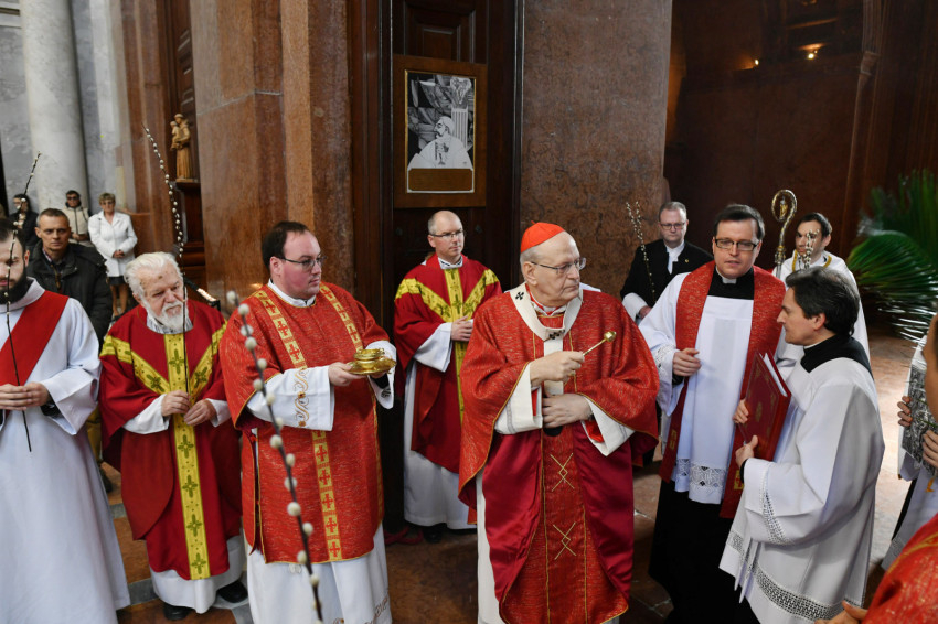 Az ünnepi liturgia elején Erdő Péter bíboros emlékeztetett: virágvasárnap a bűnbánatot jelentő nagyböjti időszak utolsó vasárnapja, egyben a nagyhét kezdete. Ezen a napon Jézus Jeruzsálembe történő bevonulásáról emlékezünk.