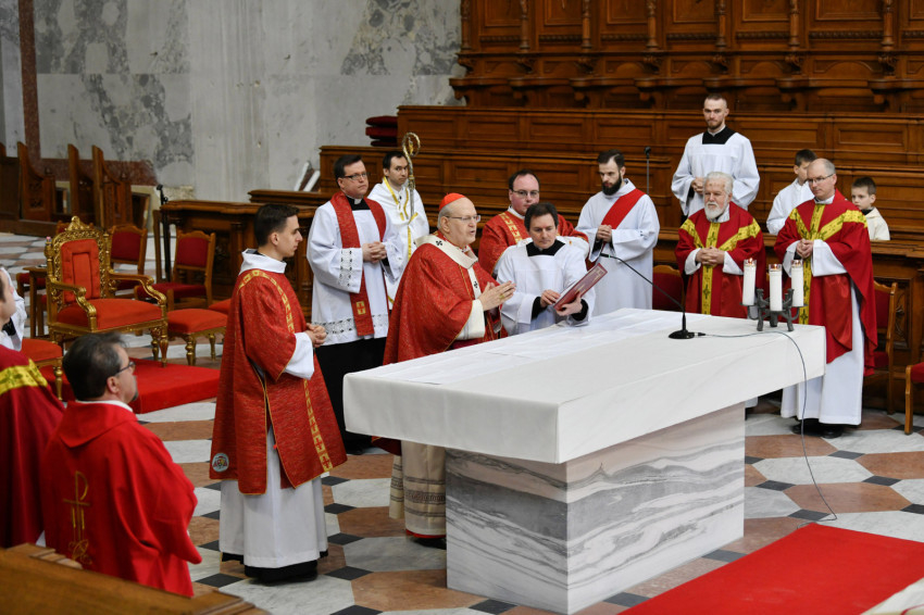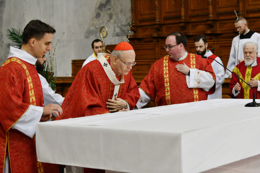 Az igeliturgia csúcspontjaként az esztergomi szeminárium növendékeinek szkólája elénekelte a passiót, Jézus Krisztus szenvedéstörténetét.