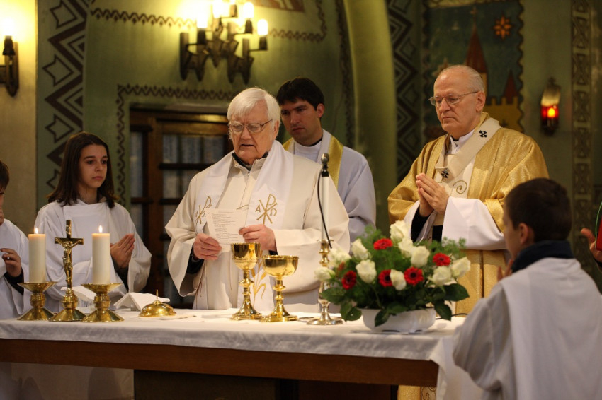 Különleges pillanat volt, amikor Erdő Péter megáldotta a templom felújított kistornyát. Az 1935-ben felszentelt épület erősen rászorul a renoválásra, de ezt a közösség csak kisebb lépésekben tudja kivitelezni. Már 2007-ben felújították a nagyobb tornyot, a következő időszak munkája lesz a templomhajó helyreállítása.
