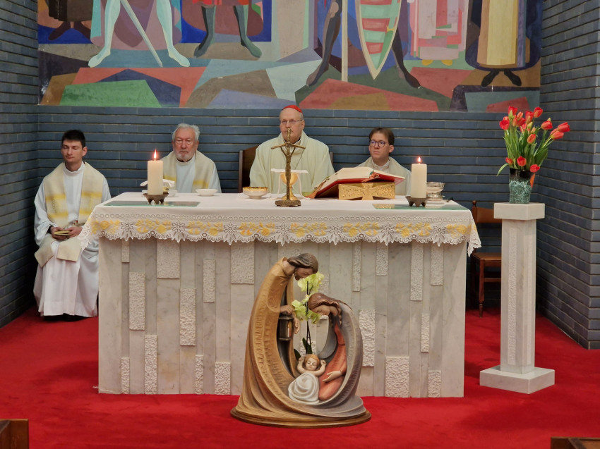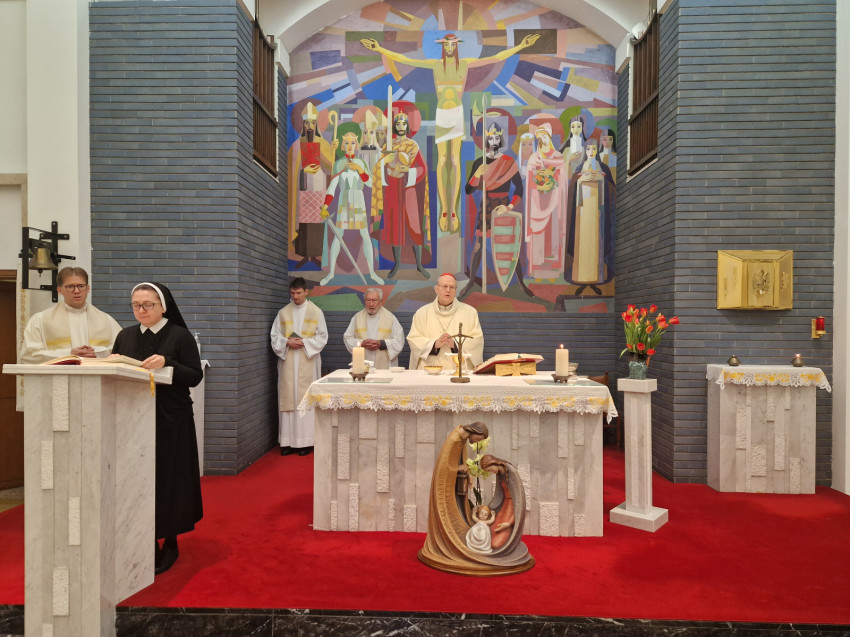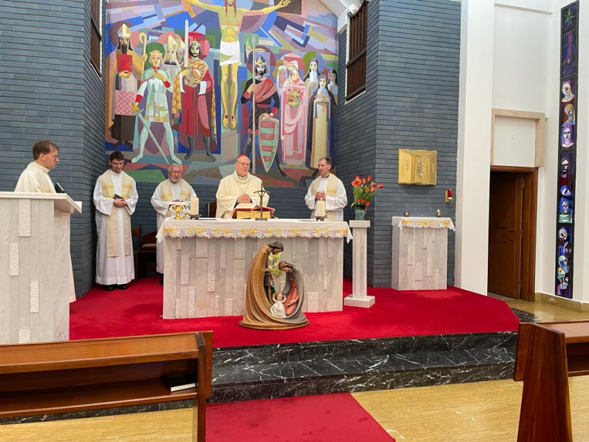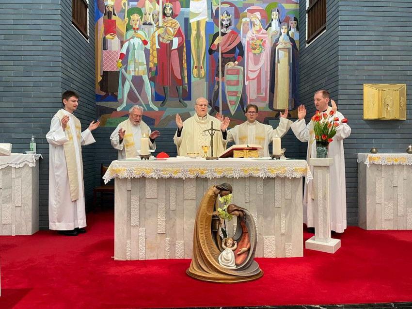 A szentmisén koncelebrált Szentmártoni Mihály SJ pszichológus, a Pápai Gergely Egyetem professzora, a Szenttéavatási Ügyek Dikasztériuma teológusa; Németh Norbert, a Pápai Magyar Intézet (PMI) rektora, az Magyar Katolikus Püspöki Konferencia (MKPK) római ügyvivője (ágense); Vörös Péter, a Kaposvári Egyházmegye papja; Varga Norbert prímási irodaigazgató; velük együtt ünnepeltek a ház munkatársai és az Isteni Megváltóról Nevezett Nővérek tagjai.