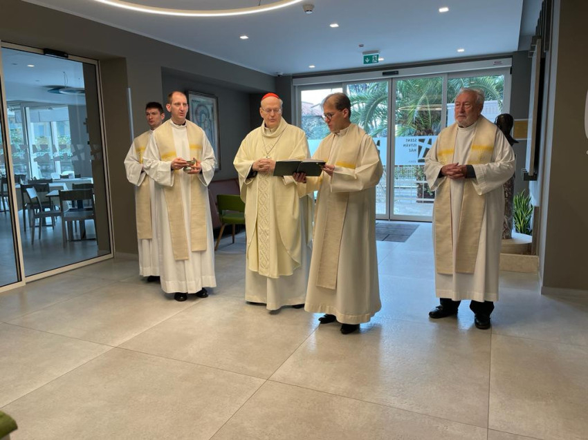 A szentmise záróáldását követően Erdő Péter, valamint a papság és az ünneplő közösség a Szent István Ház recepciójához ment, ahol a bíboros az ünnep és új év alkalmából megáldotta a házat.