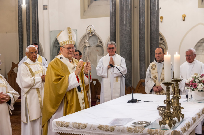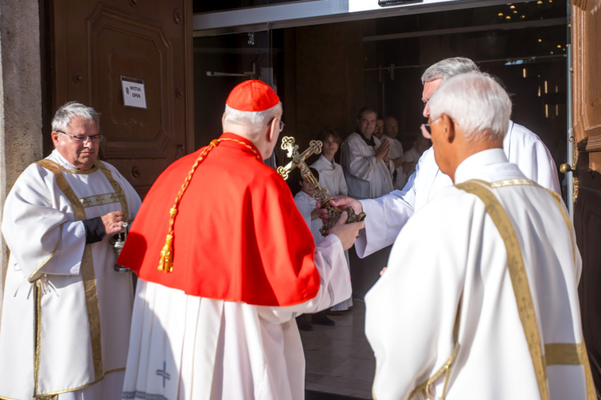 A szertartás kezdetén Osztie Zoltán plébános megköszönte Erdő Péter bíborosnak, hogy elvállalta az ünnepi szentmise koncelebrálását.