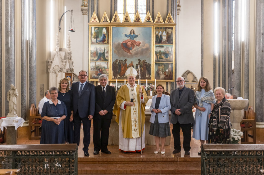 Zoltán atya megjegyezte: a 975 éves jubileum mellett a napokban megemlékeznek arról is, hogy hetvenöt évvel ezelőtt, 1948-ban szentelte fel a templom Molnár-C. Pál festőművész által készített új főoltárát Boldog Meszlényi Zoltán segédpüspök. Ugyanebben az esztendőben, a plébánia megalakulásának 900. évében, Nagyboldogasszony napján nagy hatású beszédet mondott a Március 15. téren Mindszenty József bíboros, hercegprímás. Elhangzott többek között ez a mondat is: „Ez a templom elbeszél, tanít és eligazít az örök élet felé.”