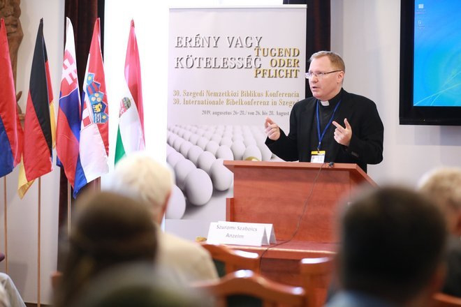 A harmincadik – jubileumi – ülésen huszonhét szakértő fejtette ki álláspontját az erények és a kötelesség kapcsolatáról, magyar, német vagy angol nyelven. A rendezvényt a konferencia védnökei közül megtisztelte jelenlétével Jakubinyi György gyulafehérvári érsek, Szuromi Szabolcs, a Pázmány Péter Katolikus Egyetem (PPKE) leköszönő rektora és Martos Levente Balázs a Pápai Biblikus Bizottság tagja.