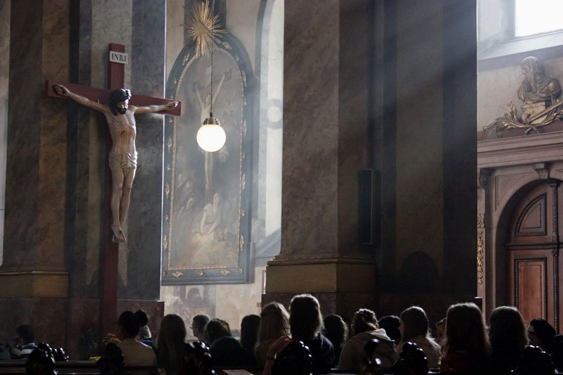 A reggeli órákban a bazilika bejáratánál gyülekező diákok egy-egy színes karszalagot, valamint egy könyvjelzőt kaptak egy Ferenc pápától származó gondolattal.