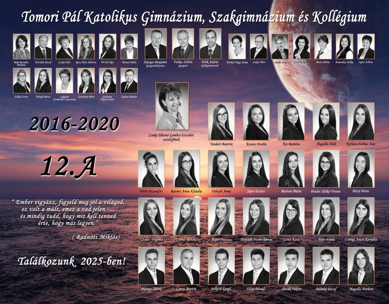 Kérjük, hogy a képek mellett néhány sorban (maximum 1500 karakter) mutassák be a végzős diákok az iskolát és osztályukat, valamint küldjék el az osztálynévsort.