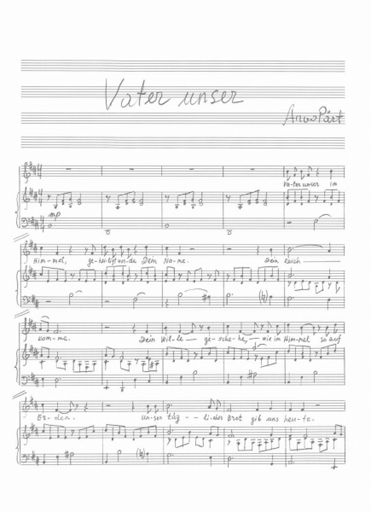 2011. július 4-én XVI. Benedek pappá szentelésének hatvanadik évfordulóját ünnepelte; az ebből az alkalomból rendezett ünnepségre hatvan művészt hívtak meg – köztük három zeneszerzőt, akiket arra kértek, komponáljanak ajándékot Benedek pápa tiszteletére. Arvo Pärt maga adta elő zongorán a Vater Unser (Miatyánk) című művét, melyet Heldur Harry Polda fiú szoprán énekelt; ez a darab nyitotta meg az estet.
