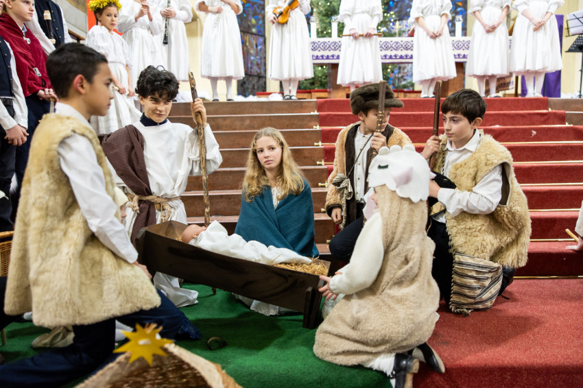 A Pannonia Sacra Általános Iskola diákjai ezután betlehemes játékot mutattak be. Igényes előadásuk a Dobszay-féle betlehmest elevenítette meg, melyet a zenetörténész, népzenekutató Dobszay László gyűjtései, kutatásai ihlettek.