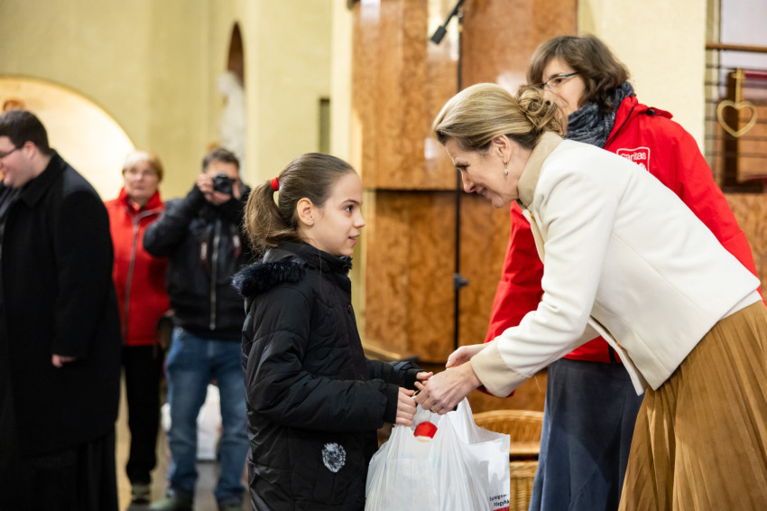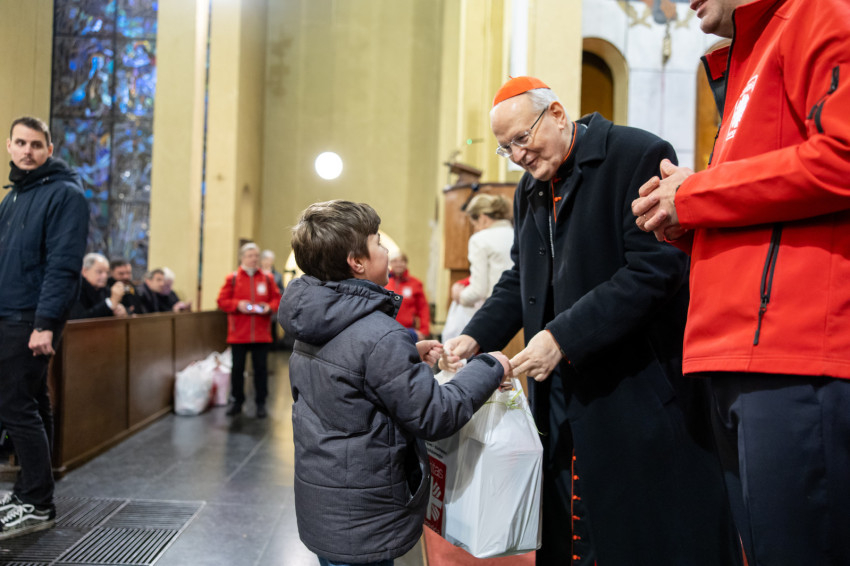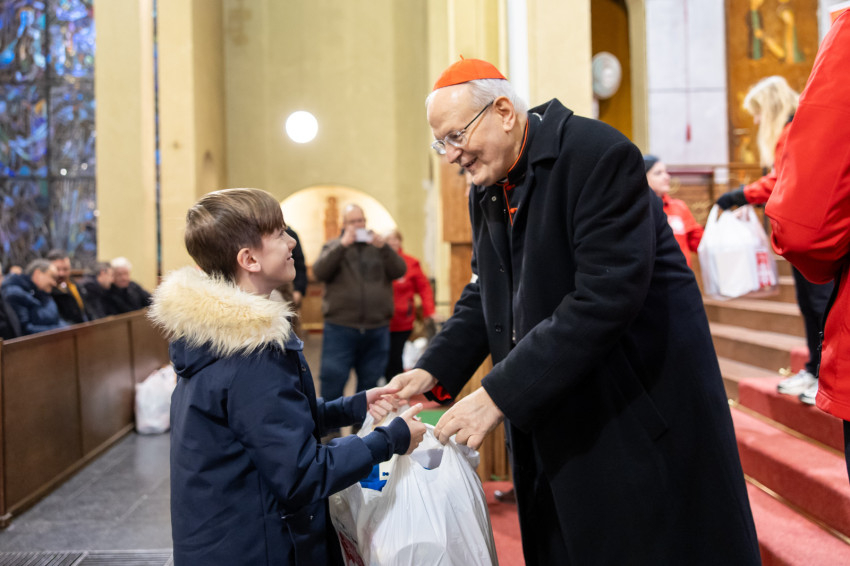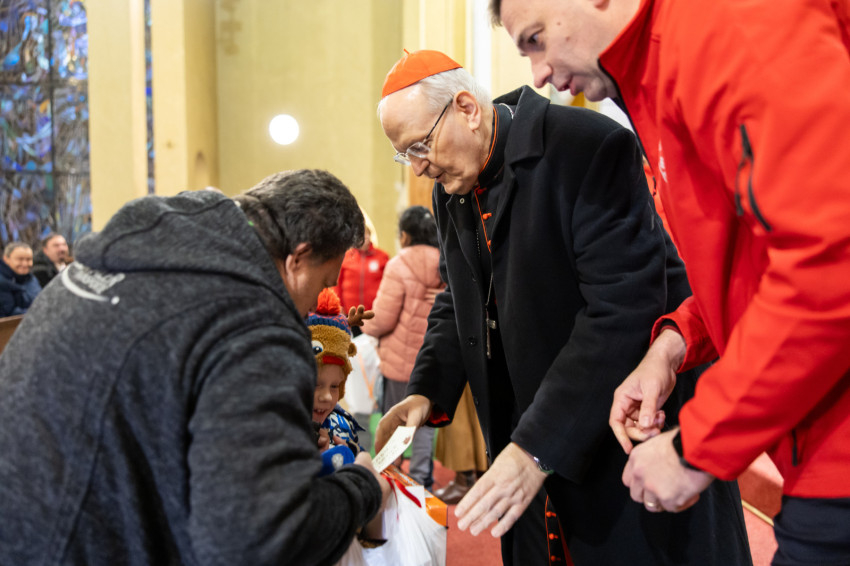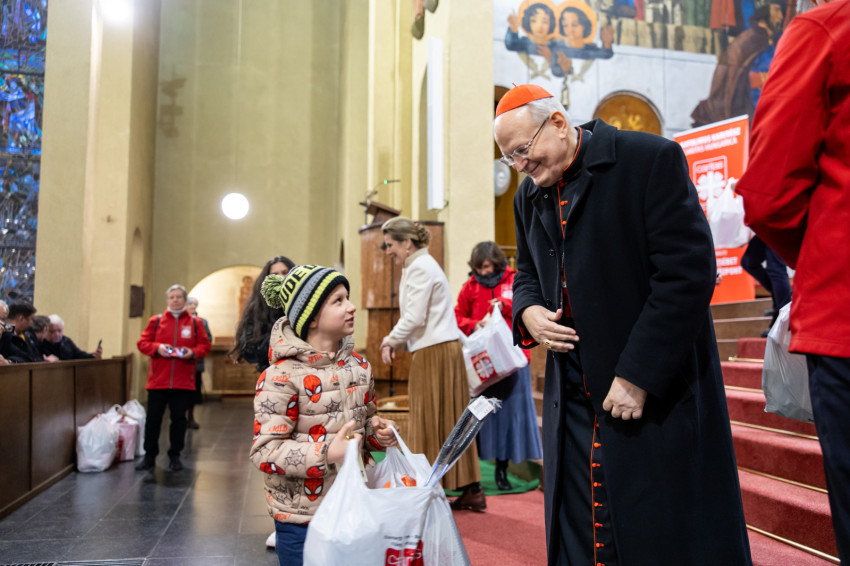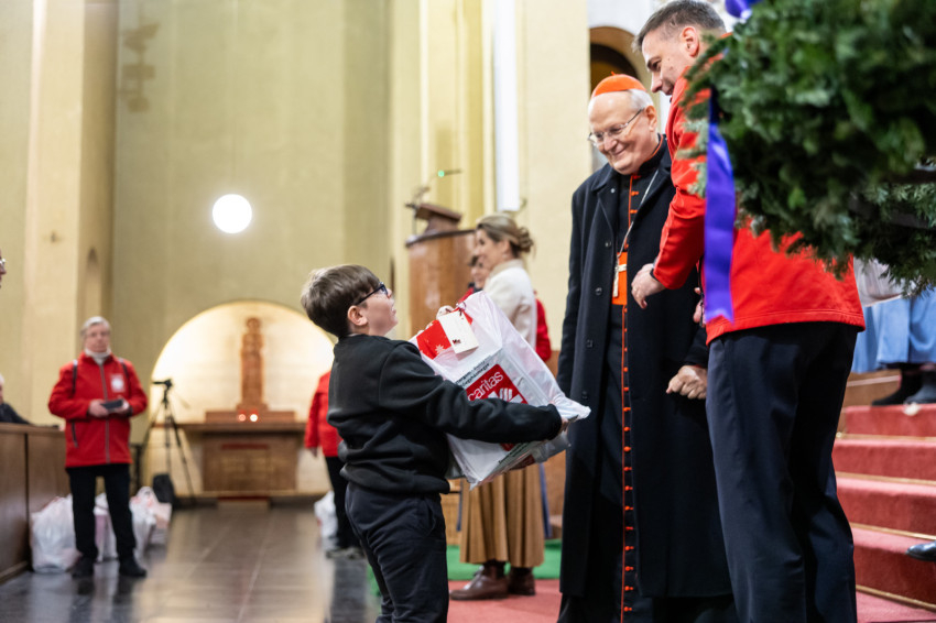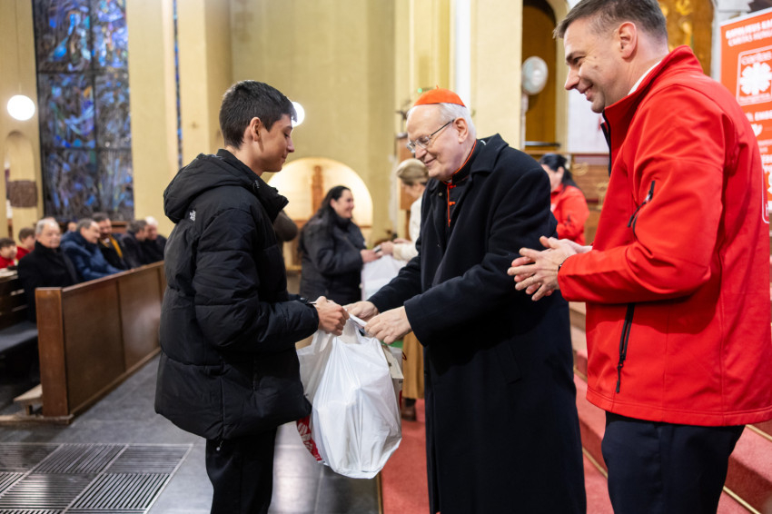 Ezután a név szerint szólították a gyerekeket a szentélyhez, ahol Erdő Péter bíborostól és Herczegh Anitától átvették a gazdagon megrakott ajándékcsomagokat. Erdő Péter bíboros áldásával fejeződött be a Katolikus Karitász főegyházmegyei ünnepsége.