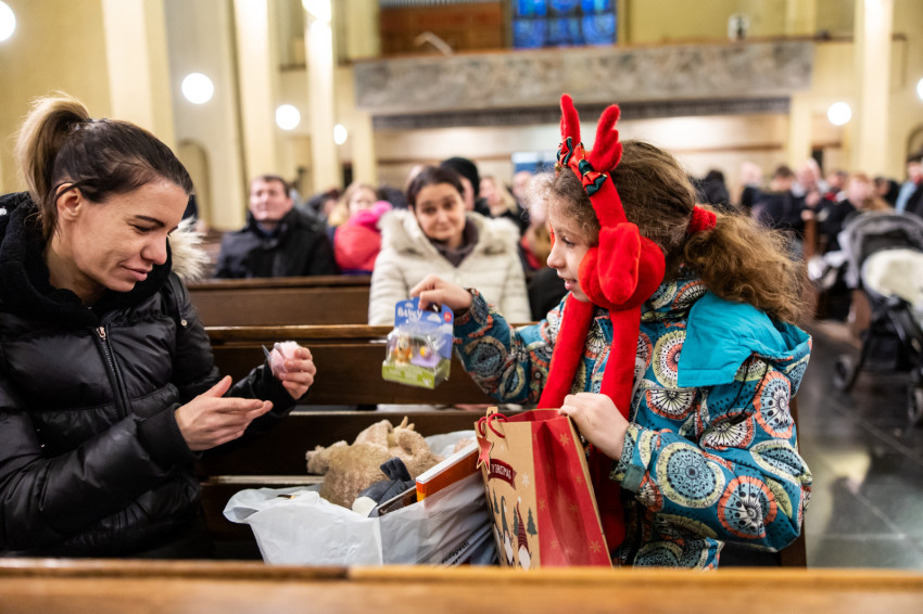 vagy éppen olyan ajándékokkal, amelyeket néhány perc múlva a Katolikus Karitásztól fogtok kapni”