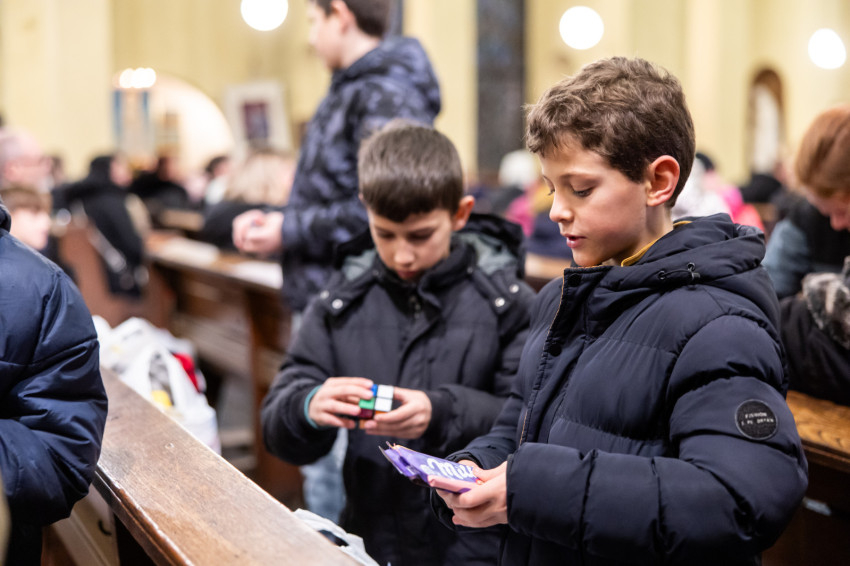 Mindenkit arra biztatott, mielőtt hazamegy, nézze meg a templom betlehemét. „Figyeljétek meg, milyen sokan vannak ott az Úr Jézus jászola körül: az egyszerű emberek, a pásztorok, a napkeleti bölcsek és még sokan mások. Mindannyian ott tolonganak, mert látni akarják Jézust, és a szívükbe akarják fogadni őt. Azt kívánom nektek, hogy ti is így fogadjátok szívetekbe az Úr Jézus Krisztust. Ne csupán az ajándékokat nézzétek – bár megértem, én is voltam gyermek –, hanem azt a szeretetet is, amely az ajándék mögött van. És