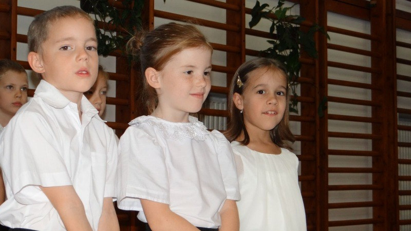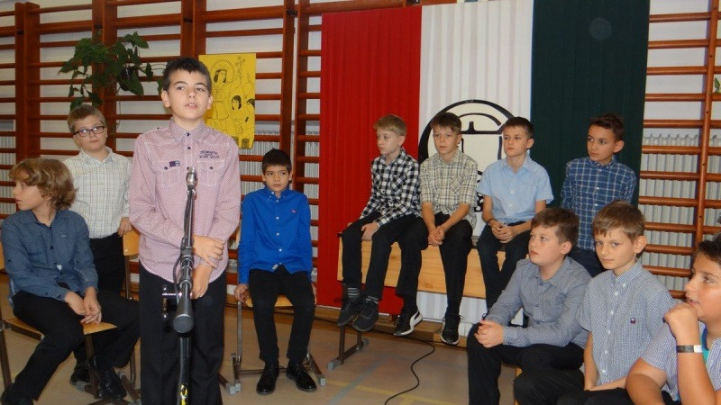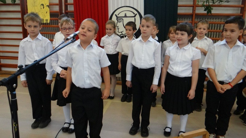 Az iskolában folytatódó ünnepségen először az ötödik osztályosok adtak műsort, közelebb hozva Szent Imre alakját diáktársaiknak és szüleiknek. Majd bemutatkoztak az elsősök, és az iskola új tanulói fogadalmat tettek, hogy betartják az iskola rendjét, figyelnek tanítójuk szavára és lelkiismeretesen végzik feladataikat.