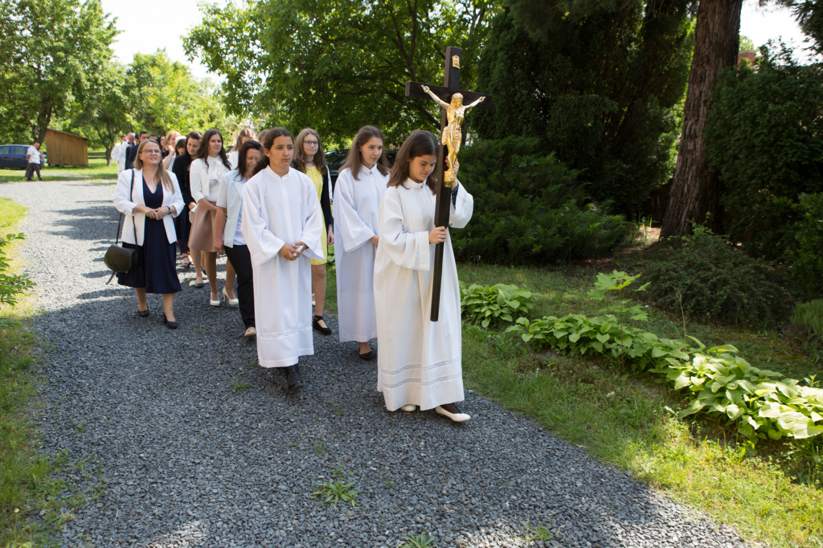 Az épület megáldása előtt Udvardy György érsek ünnepi szentmise keretében tizenkét fiatalnak szolgáltatta ki a bérmálás szentségét a Nepomuki Szent János-templomban.