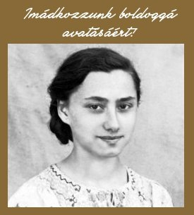 Imádkozzunk azért, hogy folyamatban levő boldoggá avatása (amelynek egyházmegyei része hamarosan befejeződik) mielőbb jó véget érjen. Korunkban talán semmire sincs nagyobb szükség, mint olyan példaképekre, kikben a szerzetesi elhivatottság a világi apostolsággal egyesült, akik bebizonyították Nagy Szent Teréz mondását, amely szerint „Isten jelen van a konyhában, a fazekak közt is”, vagy Szalézi Szent Ferenc (és a II. vatikáni zsinat) tanítását, amely szerint az életszentség nem egy szűk kör privilégiuma, hanem minden emberé, akiknek lelkében lángra gyúlt a hit, a remény valamint az Isten és az emberek iránti szeretet.