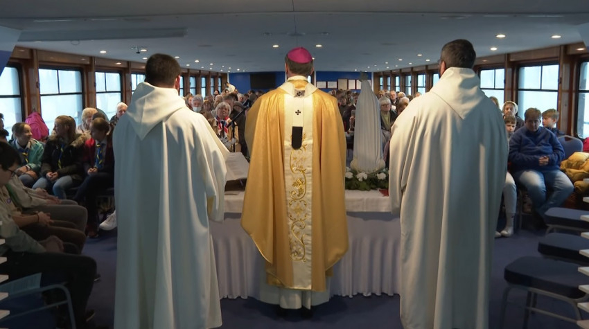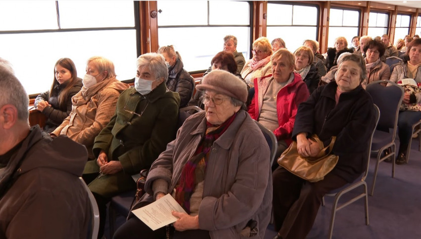 A Balaton egyik legnagyobb hajója, a Szent Miklós a hideg esős idő ellenére is szinte megtelt, közel kétszáz ember vett részt a programon a kisgyermekektől az idősebbekig. Indulás után közös rózsafüzér imádság következett, majd Udvardy György érsek szentmisét mutatott be.