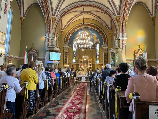 Gulyás Zsolt helyi plébános és Horváth Rémusz, az egyházközség világi elnöke a hívek nevében köszöntötte a főpásztort, aki a szentmise elején a társadalmi és politikai élet, valamint a társegyházak képviselőit is üdvözölte a 120 évvel ezelőtt felszentelt templomban, melynek védőszentje államalapító királyunk, Szent István király.